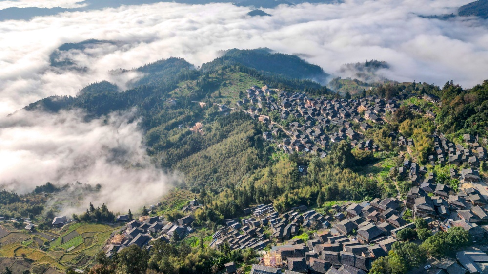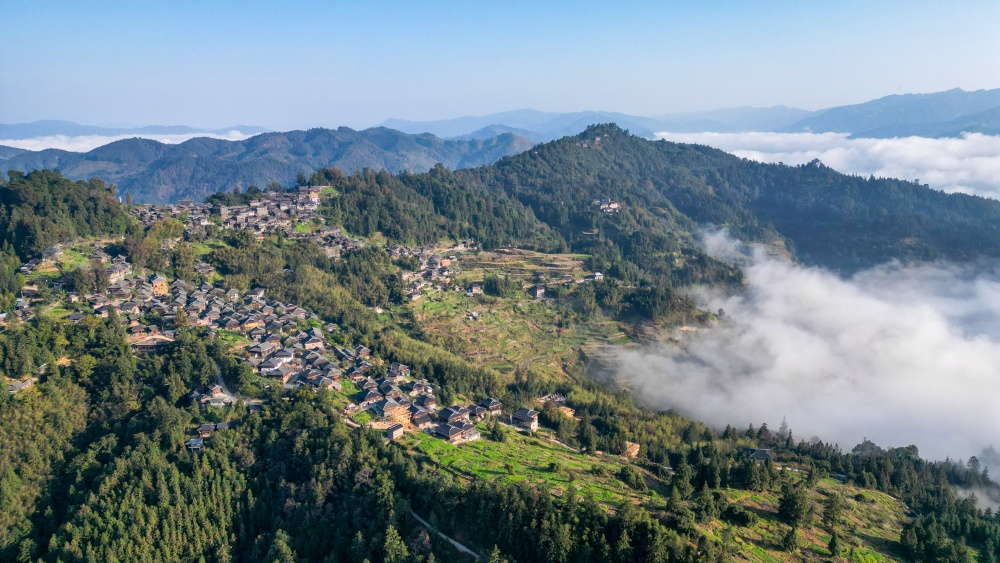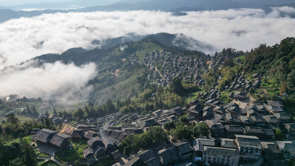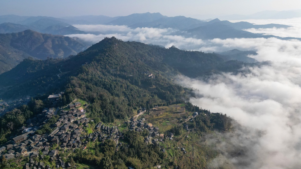 初冬时节,贵州省黔东南苗族侗族自治州从江县岜沙苗寨晨雾缥缈,依山而建、鳞次栉比的传统木屋层层错落,在光影与云雾的巧妙晕染下,构成了一幅静谧和谐、如梦似幻的天然画卷,宛如人间仙境。