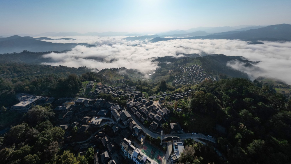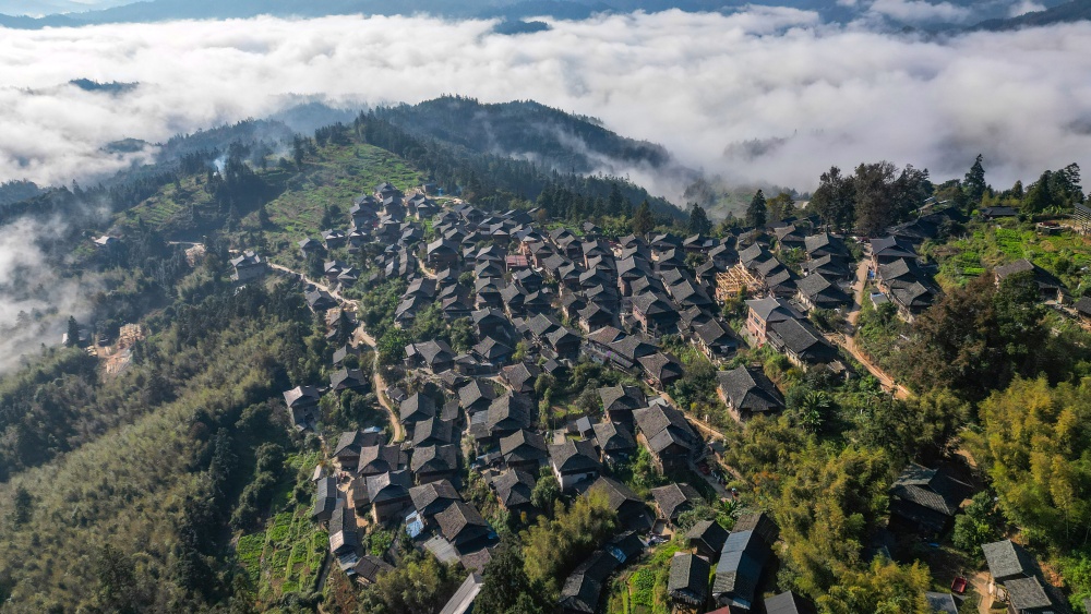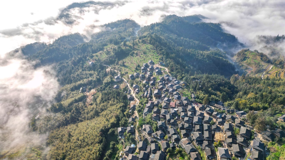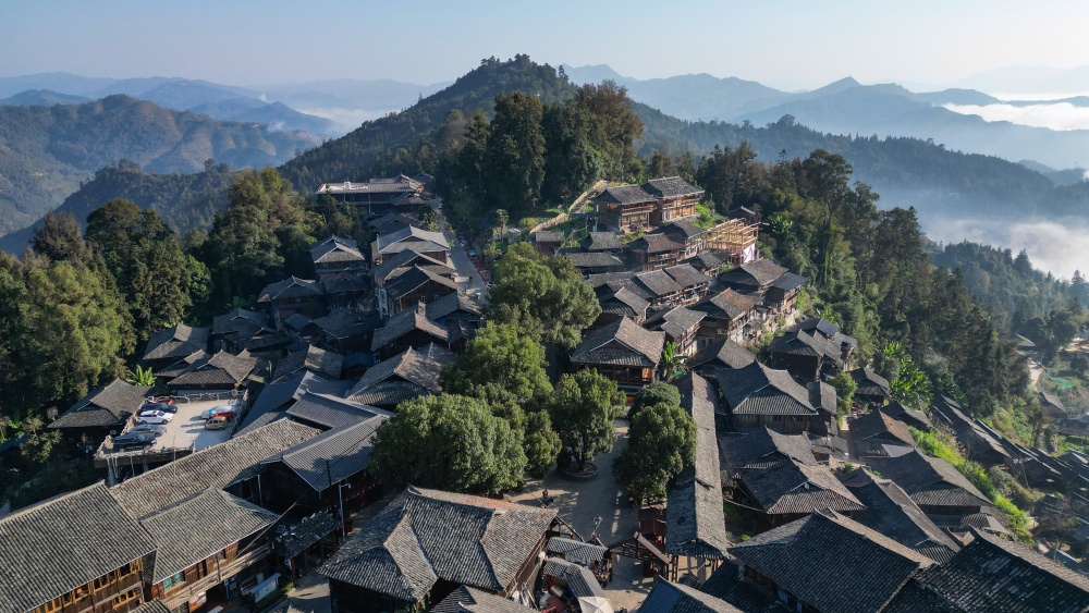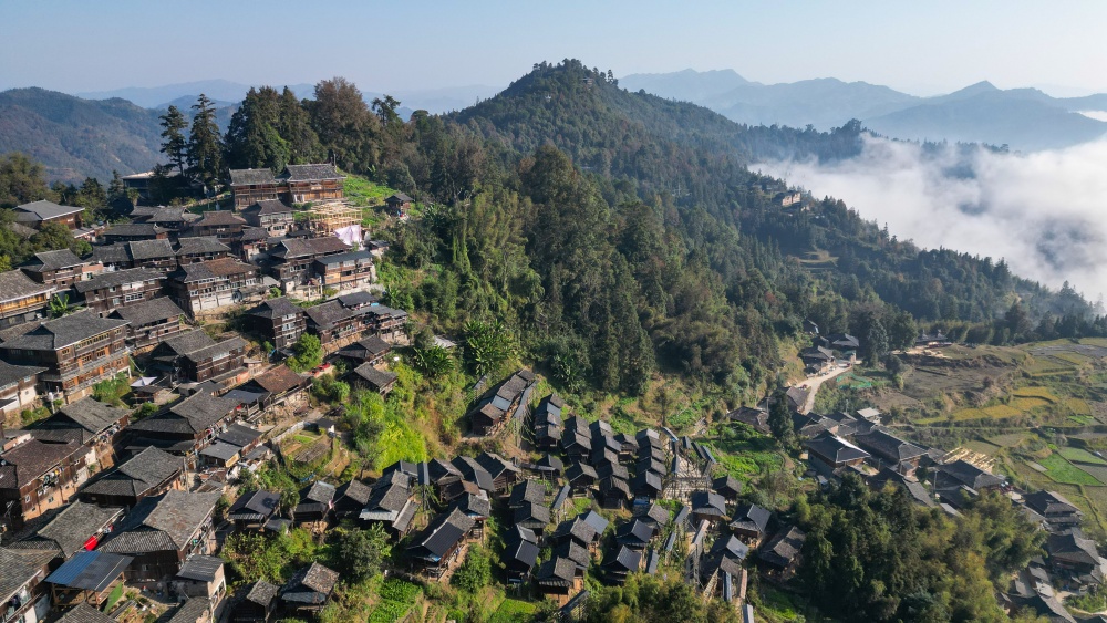 11月25日,贵州省黔东南苗族侗族自治州从江县岜沙苗寨晨景如画,美不胜收。