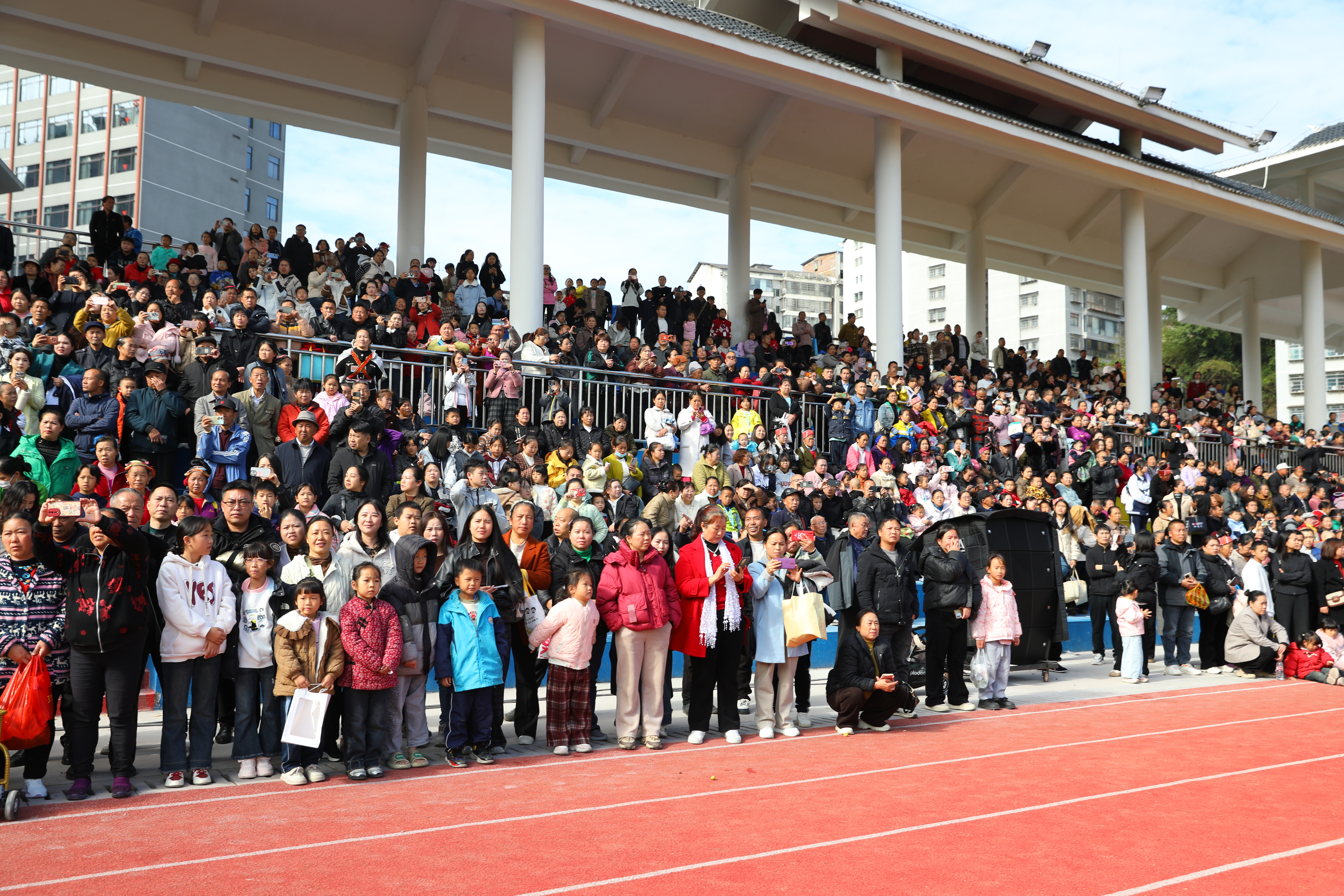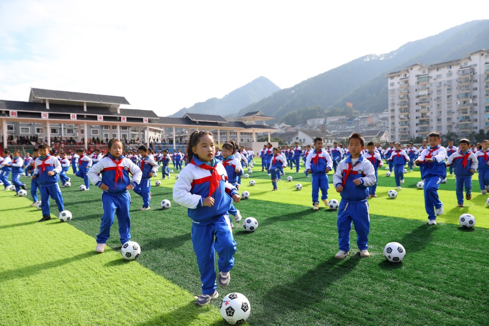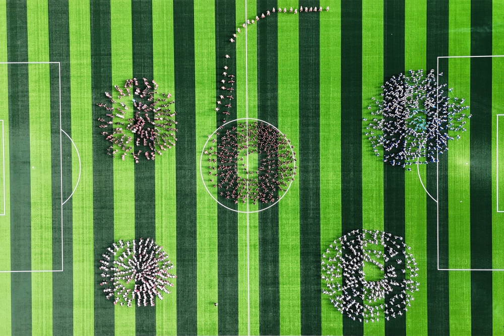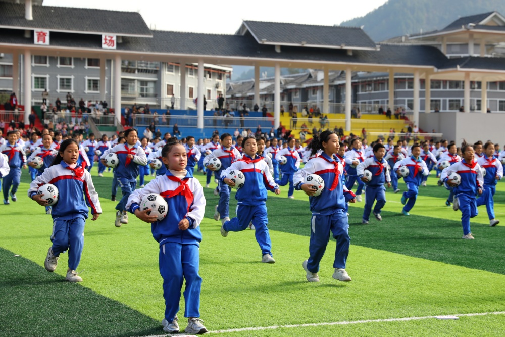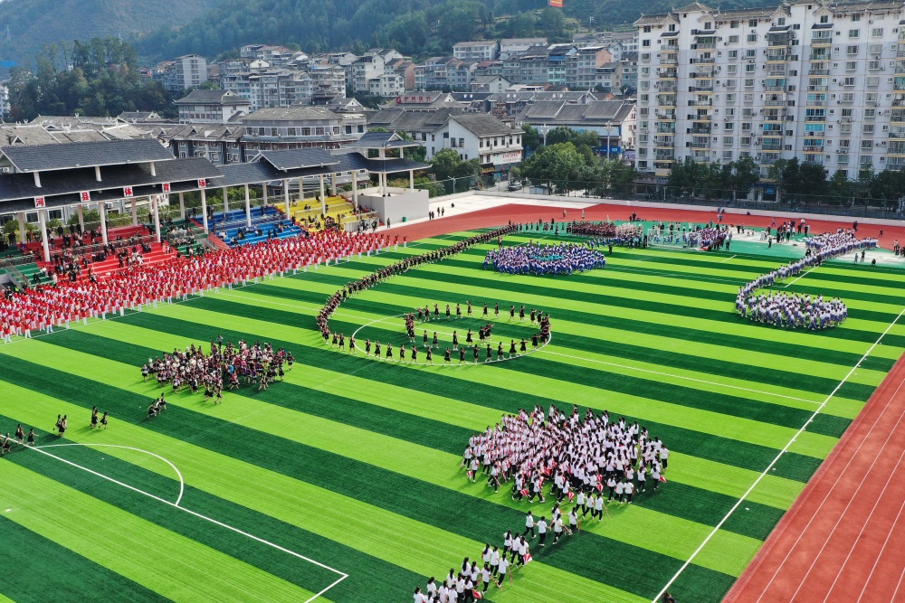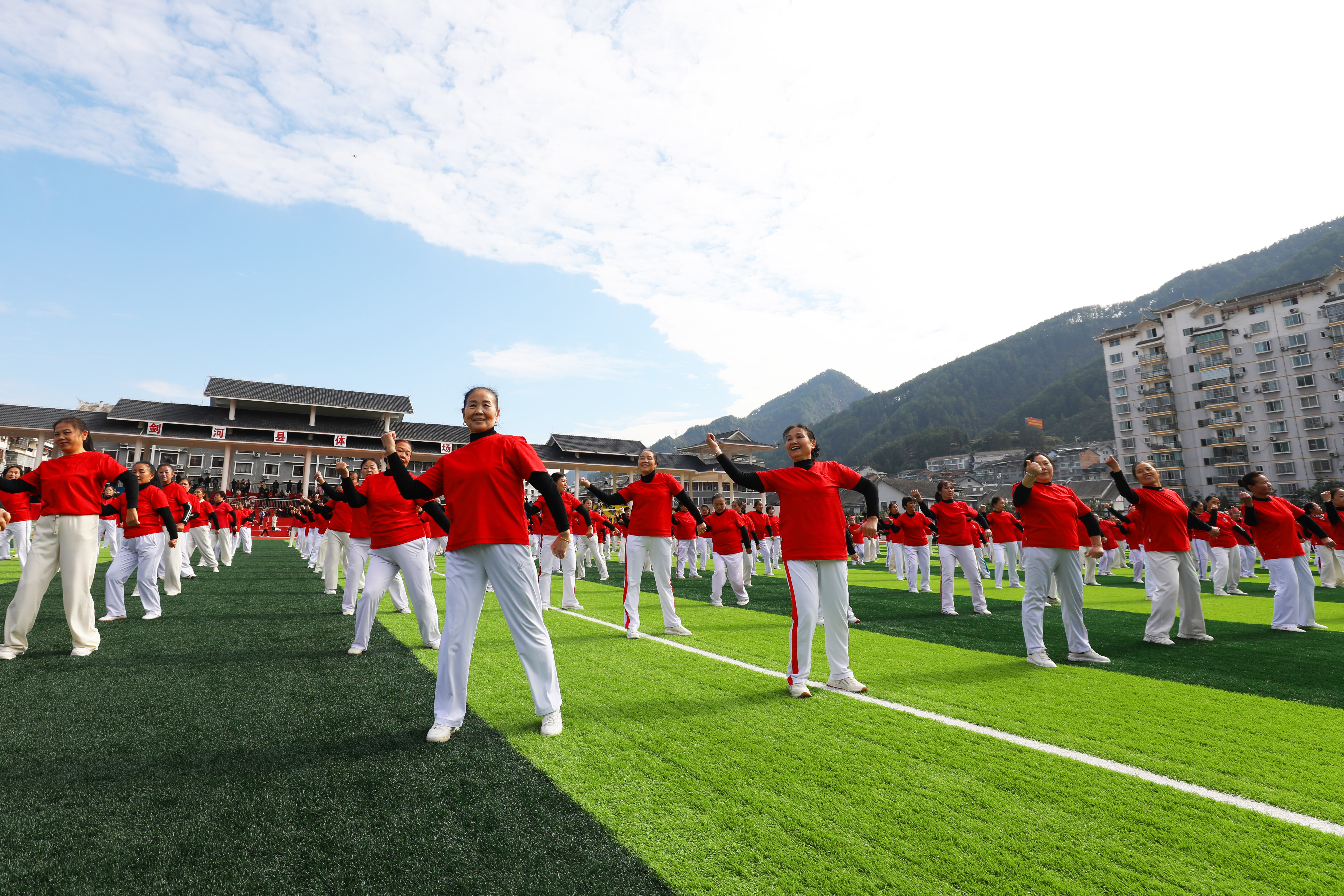文艺表演环节精彩纷呈、亮点迭出。活力满满的足球操舞出运动激情,红色伞具阵型变换如星火流转、点亮赛场,极具黔东南民族特色的飞歌高亢嘹亮、水鼓舞气势磅礴,原生态文化与运动活力碰撞交融,赢得现场观众阵阵掌声。最后,全体演员共同演绎《同心同梦》,在球场中央汇聚成五个同心圆造型,寓意各族群众同心聚力、共逐梦想,为开幕式画上圆满句号。