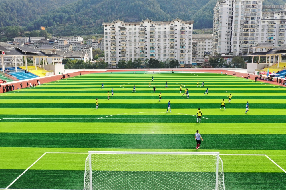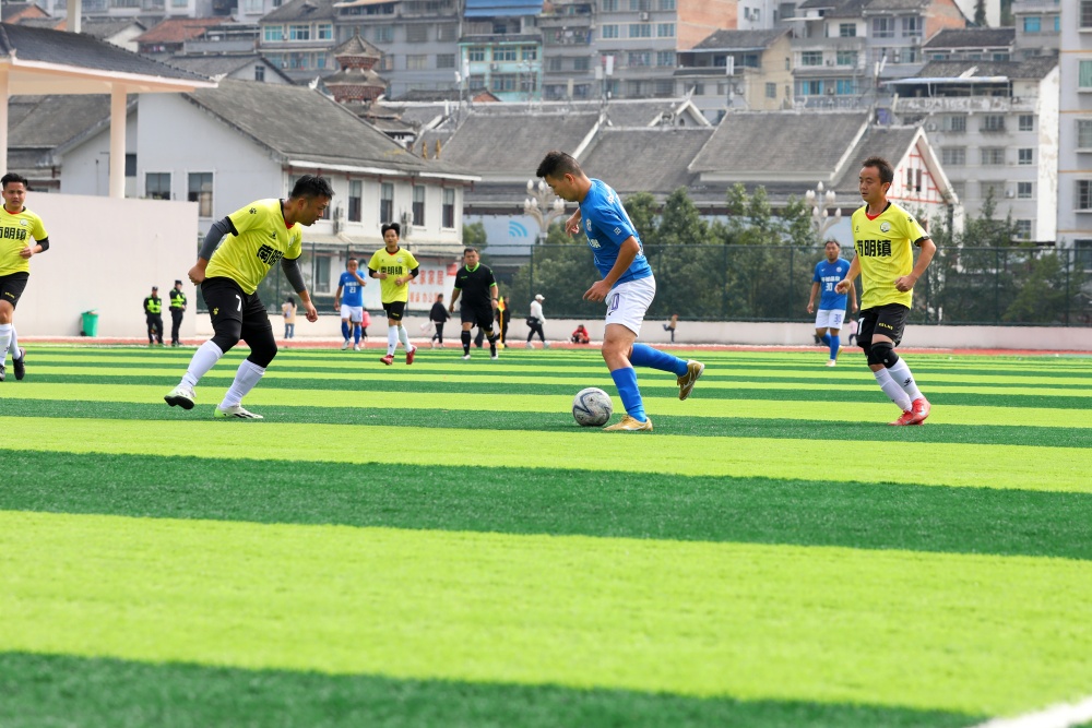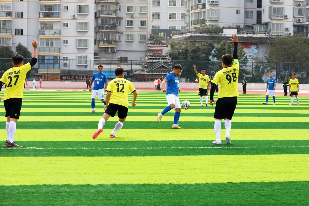 文艺表演结束后,揭幕战在岑松镇温泉队与南明镇油菜花队之间火热开赛,专程从乡镇赶来的南明镇球迷杨彰铨难掩兴奋:“我是一名忠实足球迷,今天特地赶来为资格赛助威,更要为家乡‘油菜花队’加油,现场氛围太燃了!”