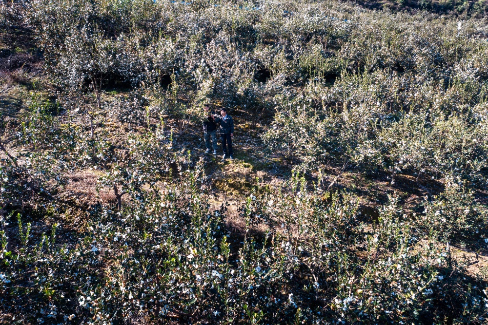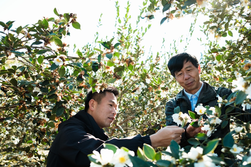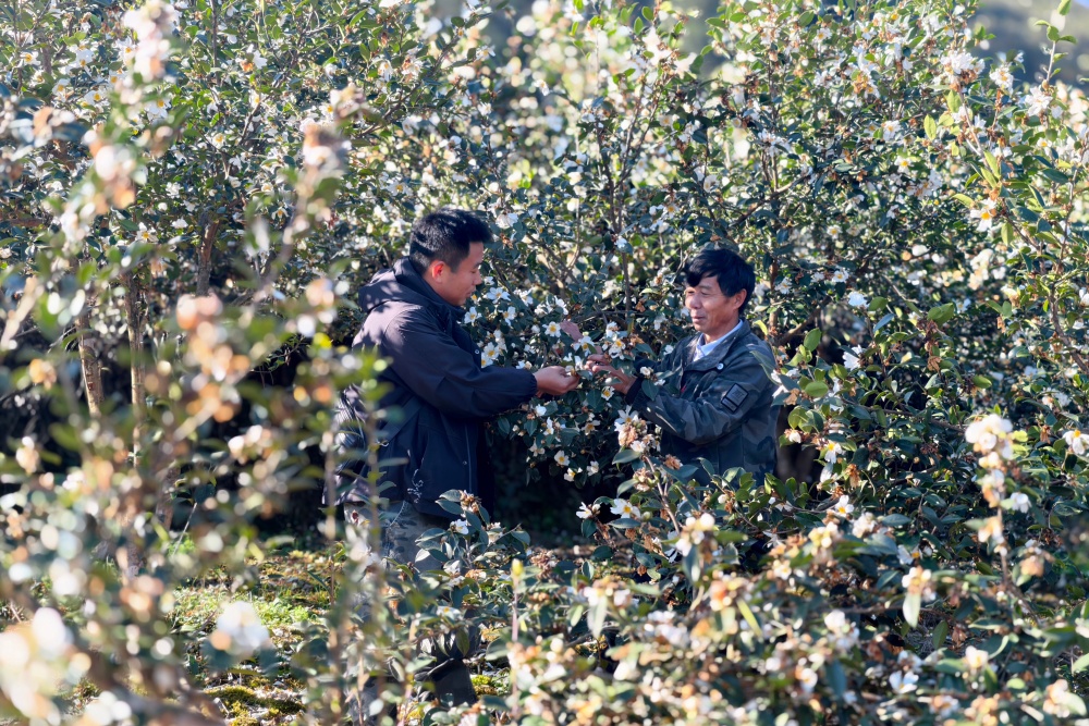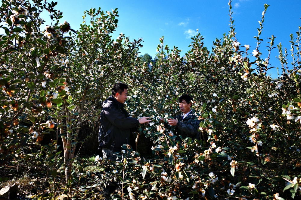 “油茶管护关键在‘精’,要根据土壤墒情和植株长势调整方案,才能保证产量和品质”。 正在查看油茶果成熟度的技术员张吉祥说道,镇里组建了专业技术服务队,分片包保指导全镇油茶种植,从育苗到采收全程跟踪,为产业发展保驾护航。