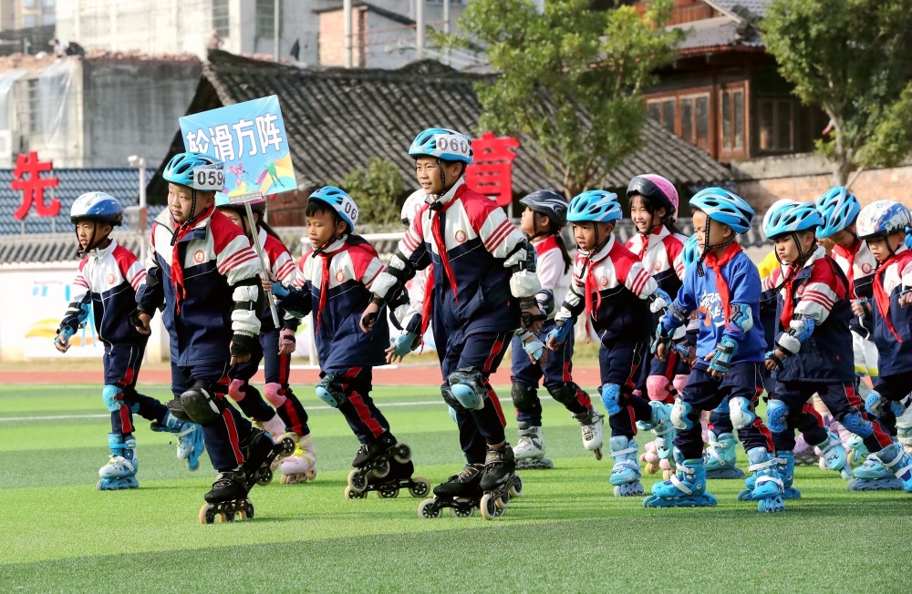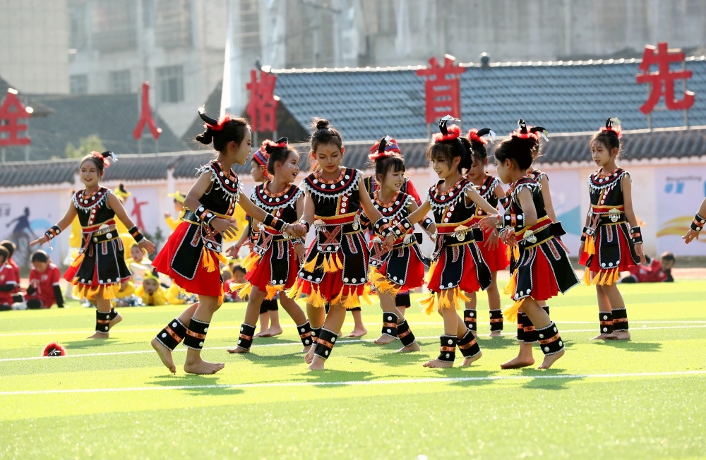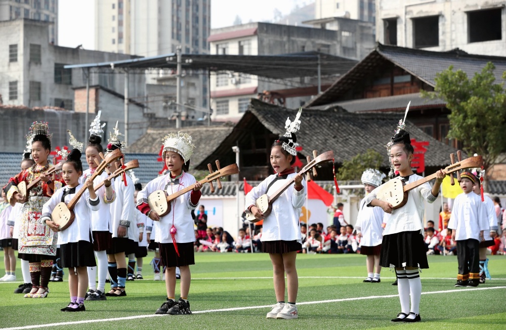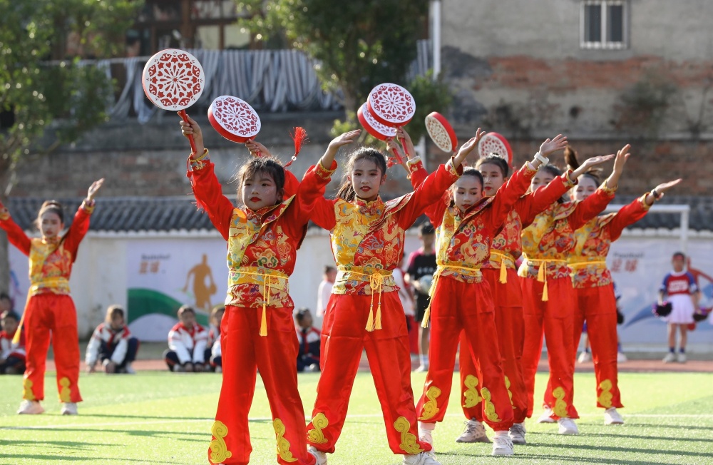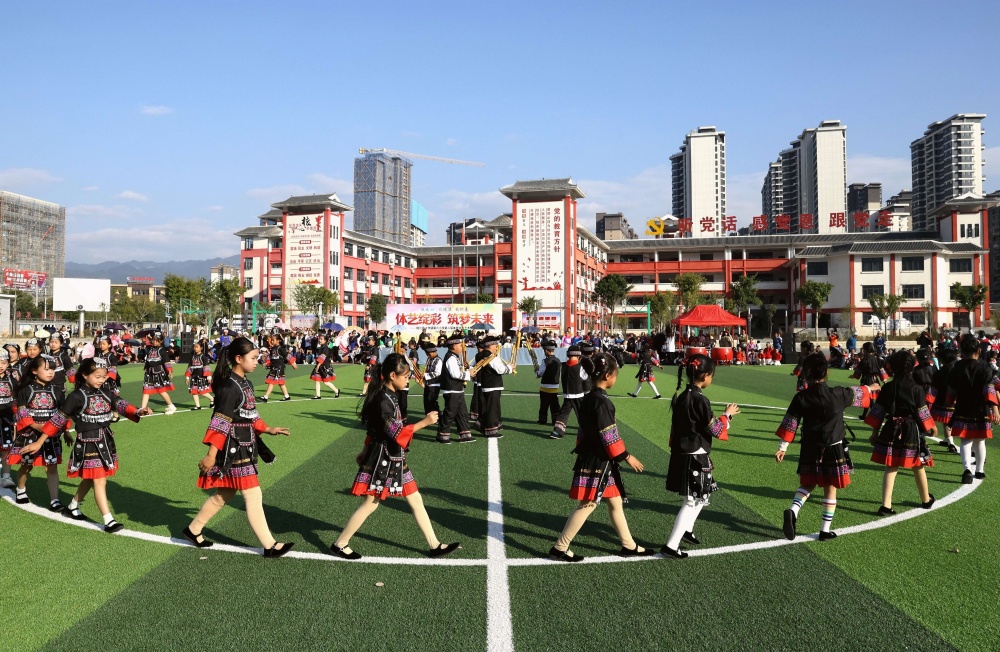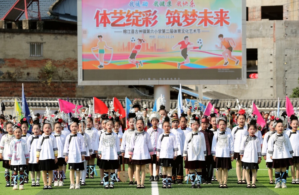 当日,贵州省黔东南苗族侗族自治州榕江县古州镇第六小学举办我运动、我健康、我快乐“体艺绽彩 筑梦未来”第二届体育文化艺术节。在体育文化艺术节期间,榕江县古州镇第六小学的萌娃和老师们以唱侗歌、吹芦笙、踩轮滑、舞蹈、足球比赛等,开展才艺以及足球竞技大比拼,展示校园多彩的体育与民族文化艺术魅力。