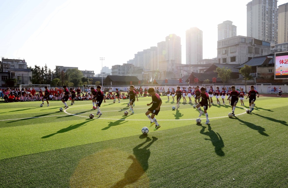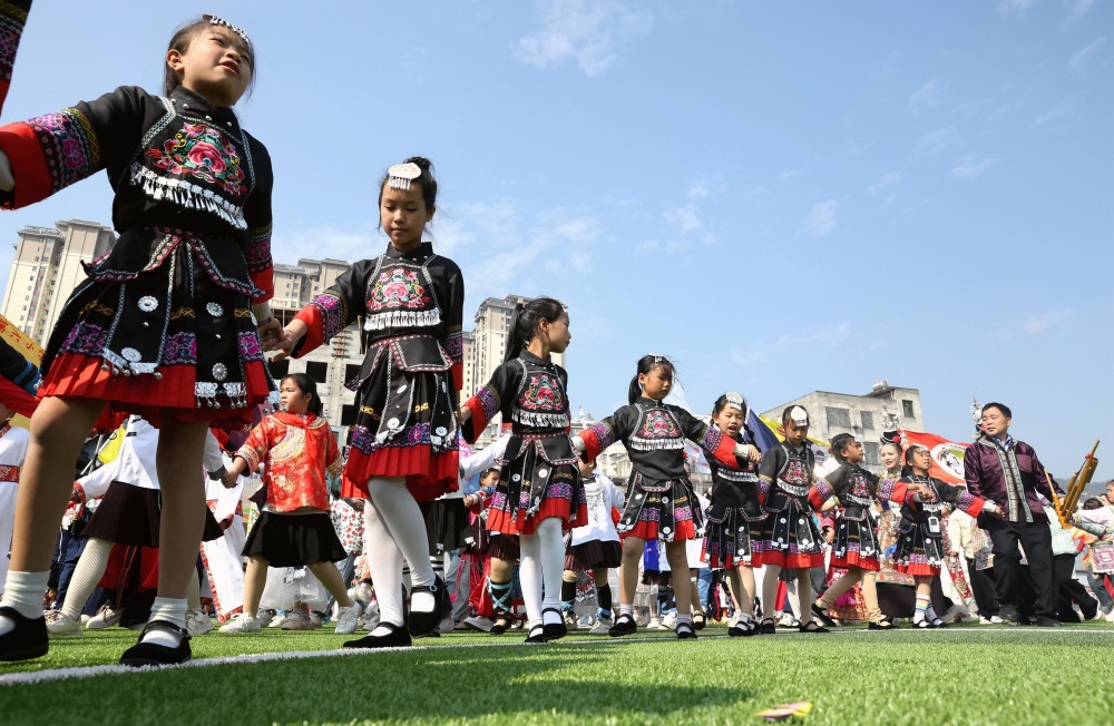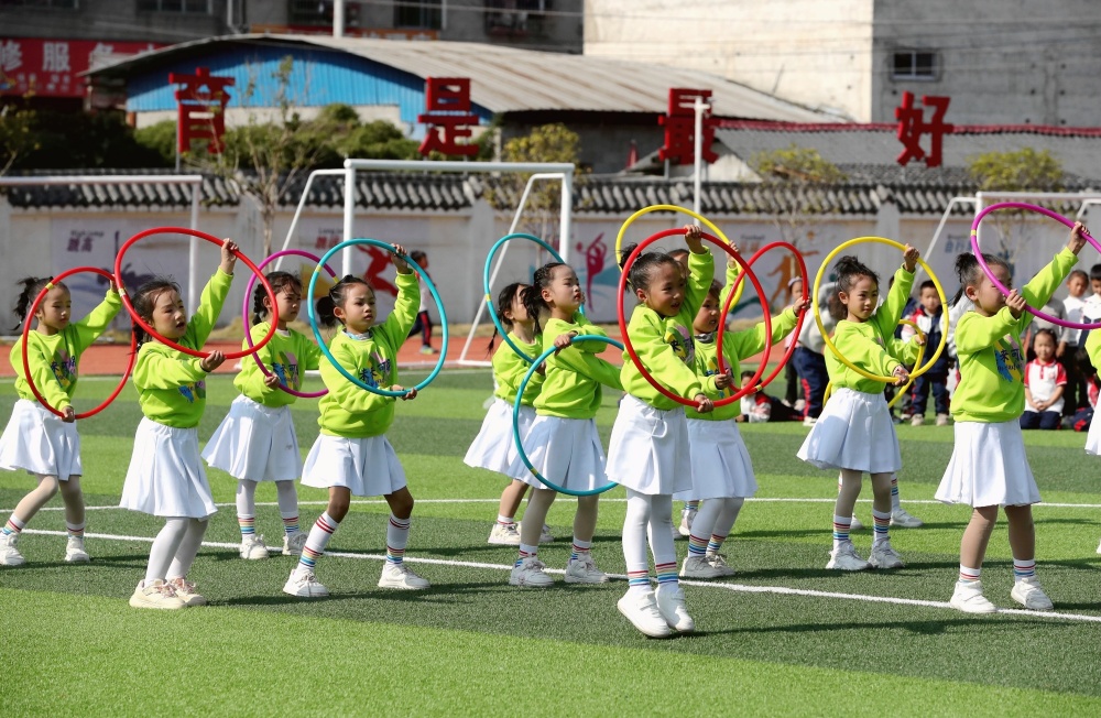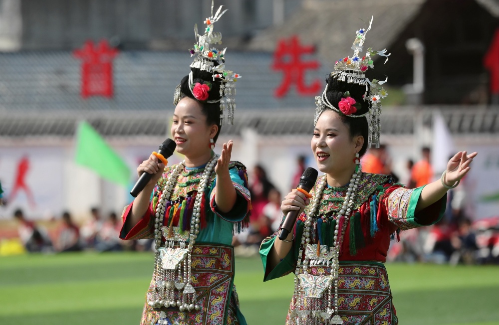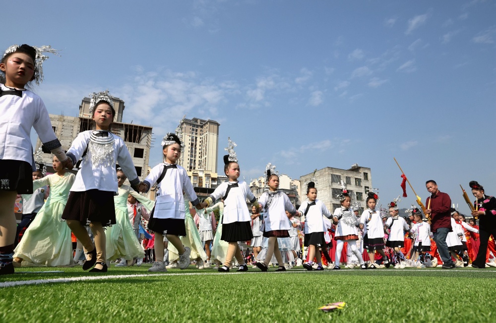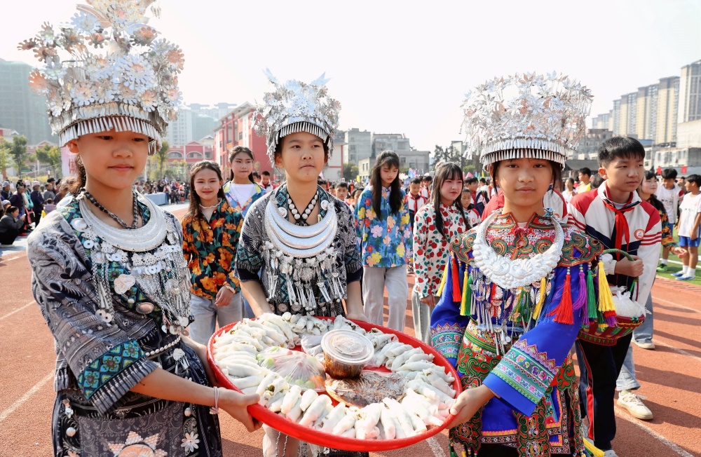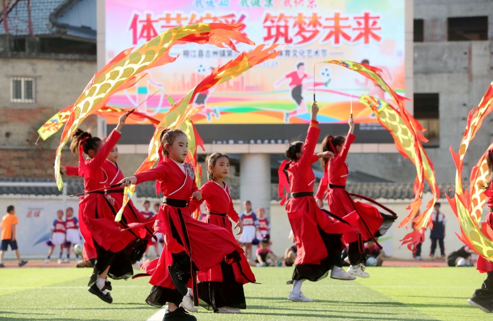 当日,贵州省黔东南苗族侗族自治州榕江县古州镇第六小学举办我运动、我健康、我快乐“体艺绽彩 筑梦未来”第二届体育文化艺术节。在体育文化艺术节期间,榕江县古州镇第六小学的萌娃和老师们以唱侗歌、吹芦笙、踩轮滑、舞蹈、足球比赛等,开展才艺以及足球竞技大比拼,展示校园多彩的体育与民族文化艺术魅力。