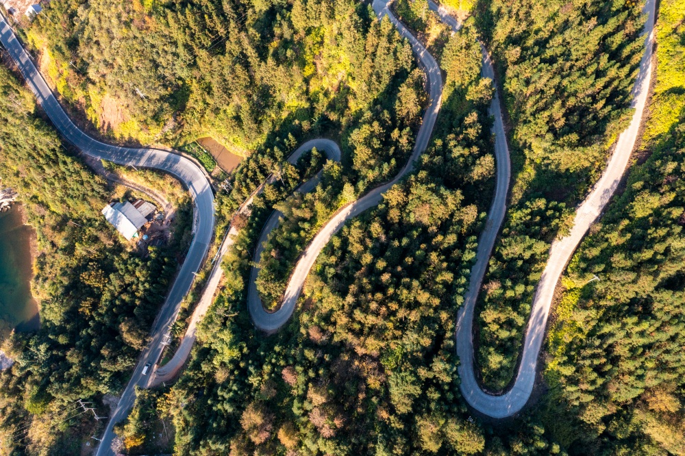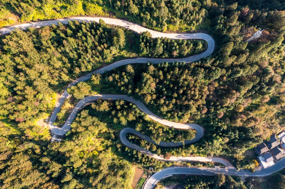 11月26日,从江县刚边壮族乡三联村,乡村公路在山间蜿蜒盘旋。