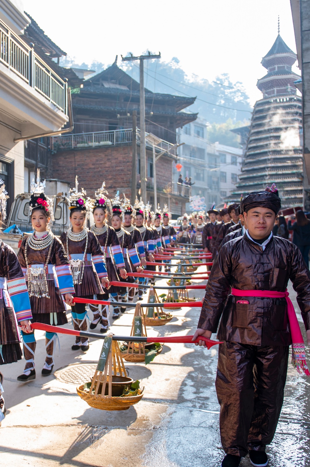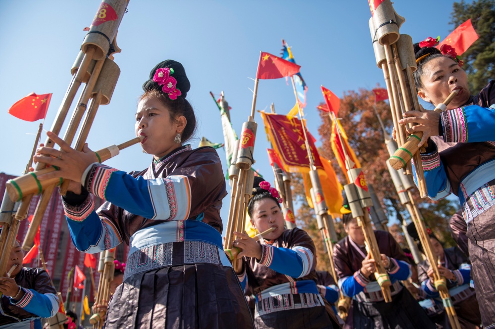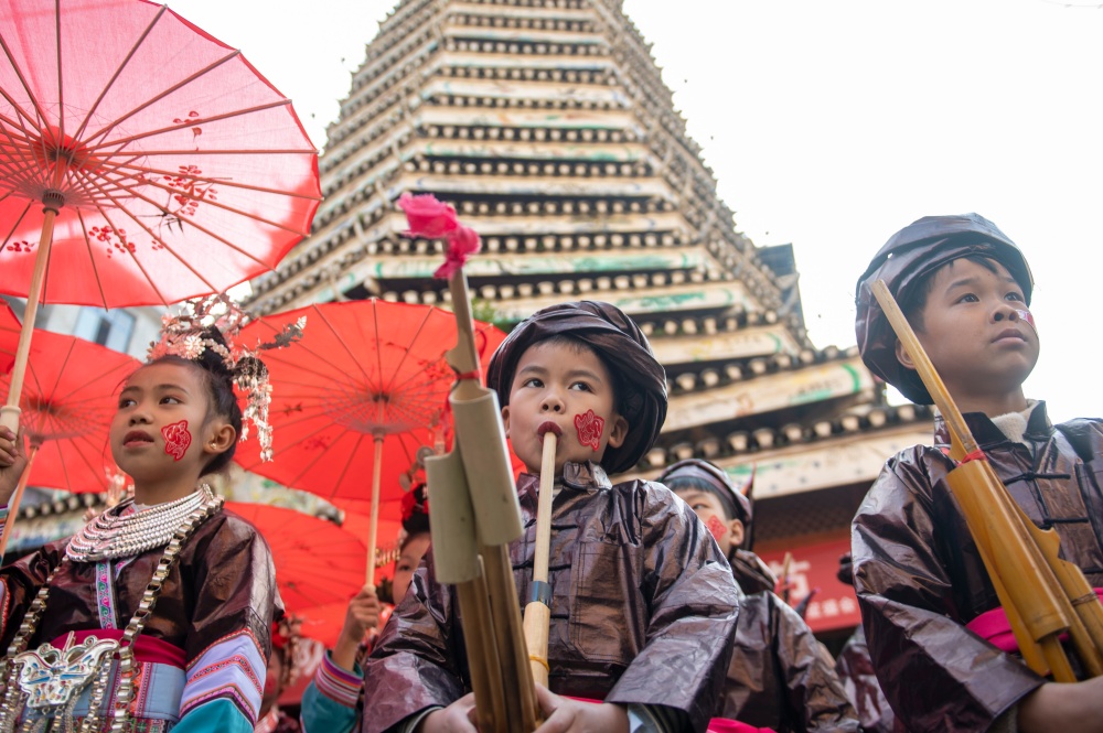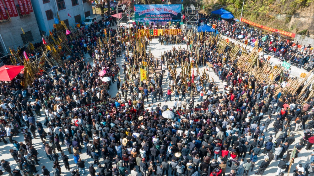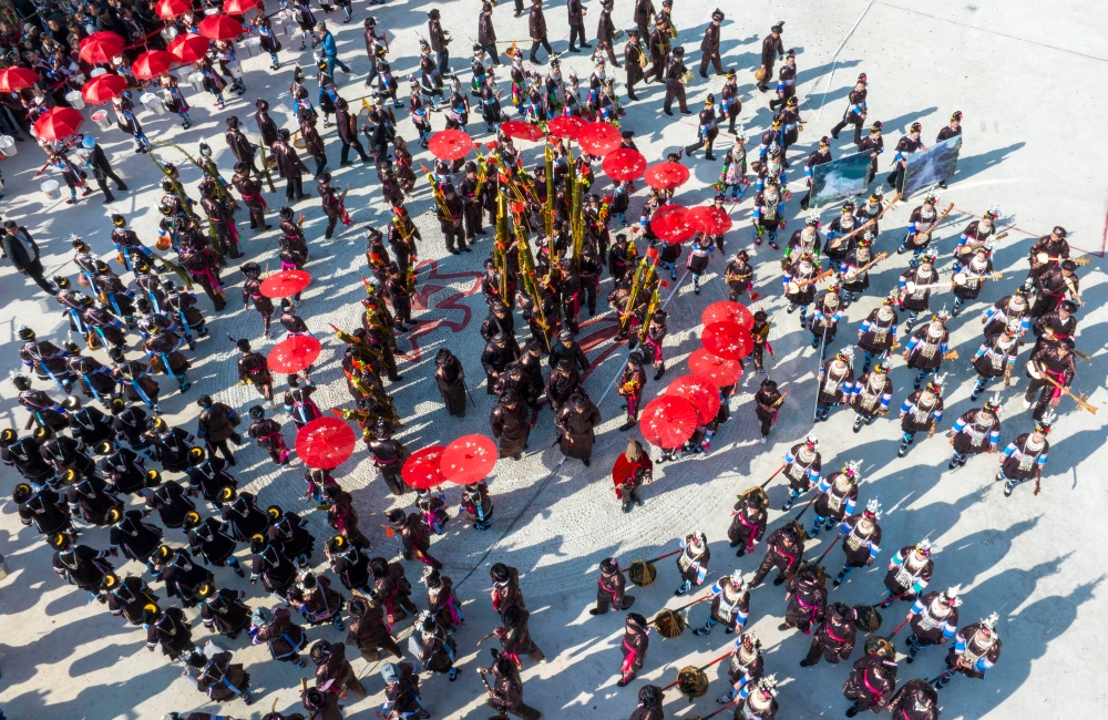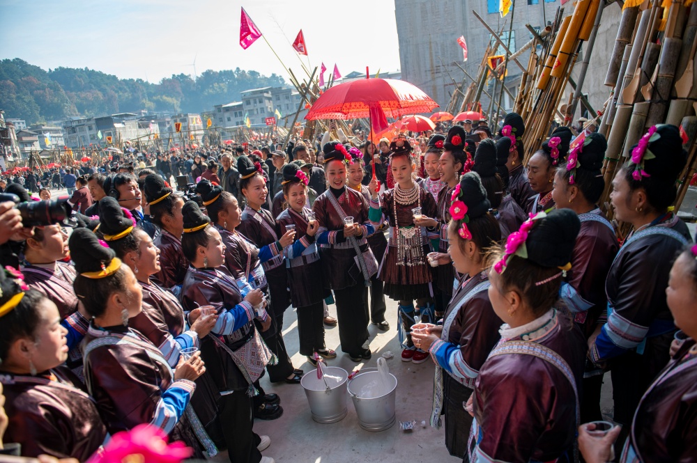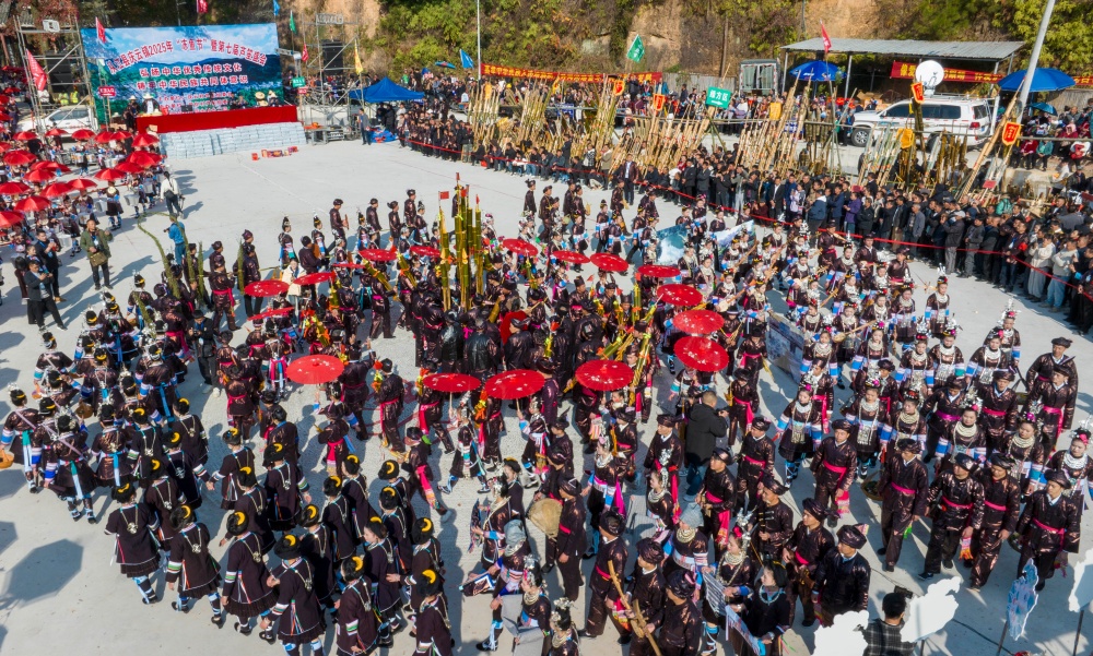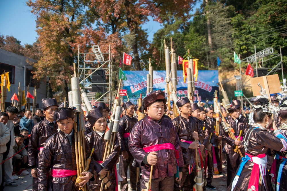 当日,贵州省黔东南苗族侗族自治州从江县庆云镇迎来一年一度的侗族“冻鱼节”。当地侗族群众与来自周边乡镇、黎平县以及广西等地的芦笙队、游客共同欢庆,通过非遗巡游、踩歌堂、芦笙比赛等活动,传承民族传统文化,展现浓郁民族风情。
