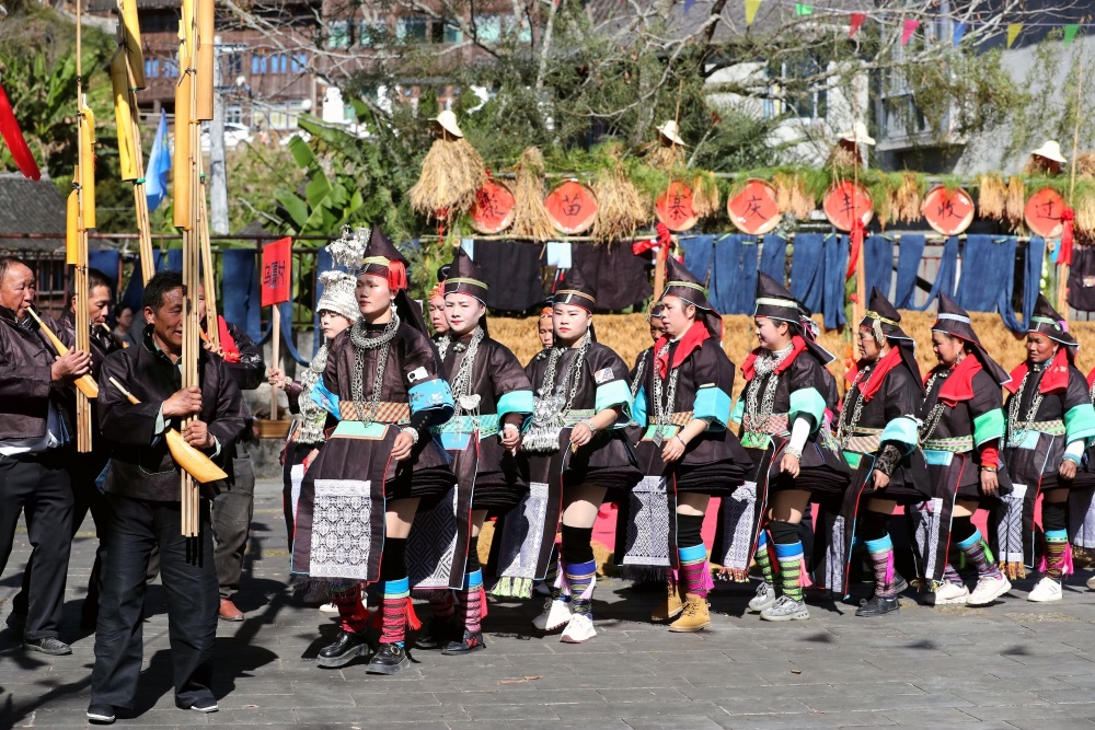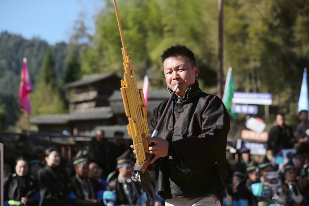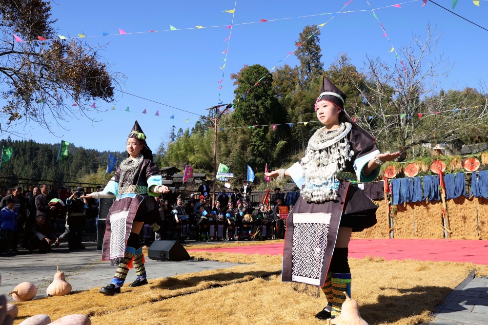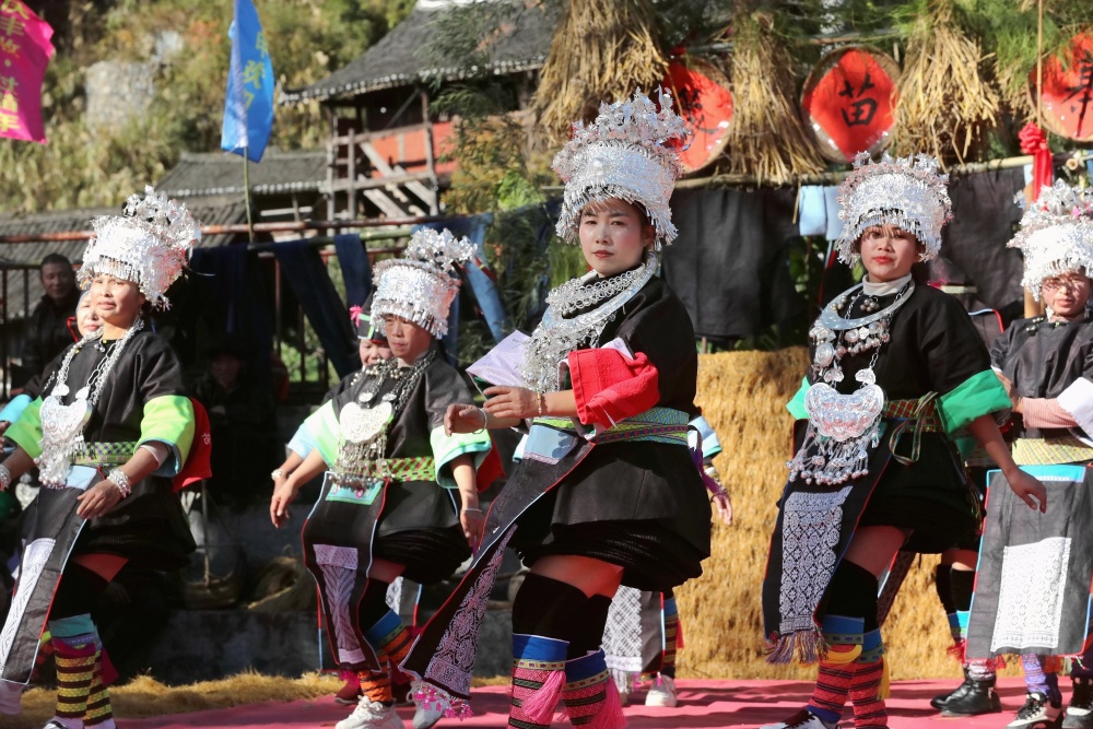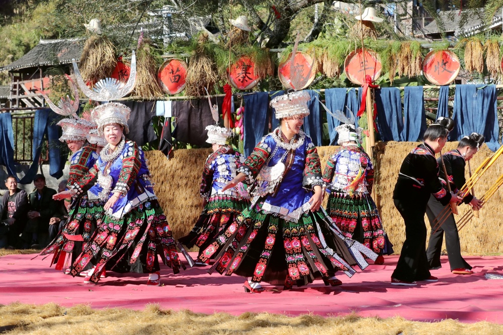 当日,贵州省黔东南苗族侗族自治州榕江县两汪乡空申村苗寨迎来传统苗年,苗族同胞身着节日盛装,吹芦笙、跳芦笙舞、唱情歌、走村秀、展示农具等,开展多彩活动欢庆苗年。