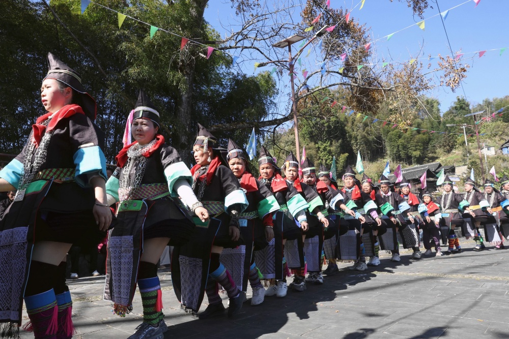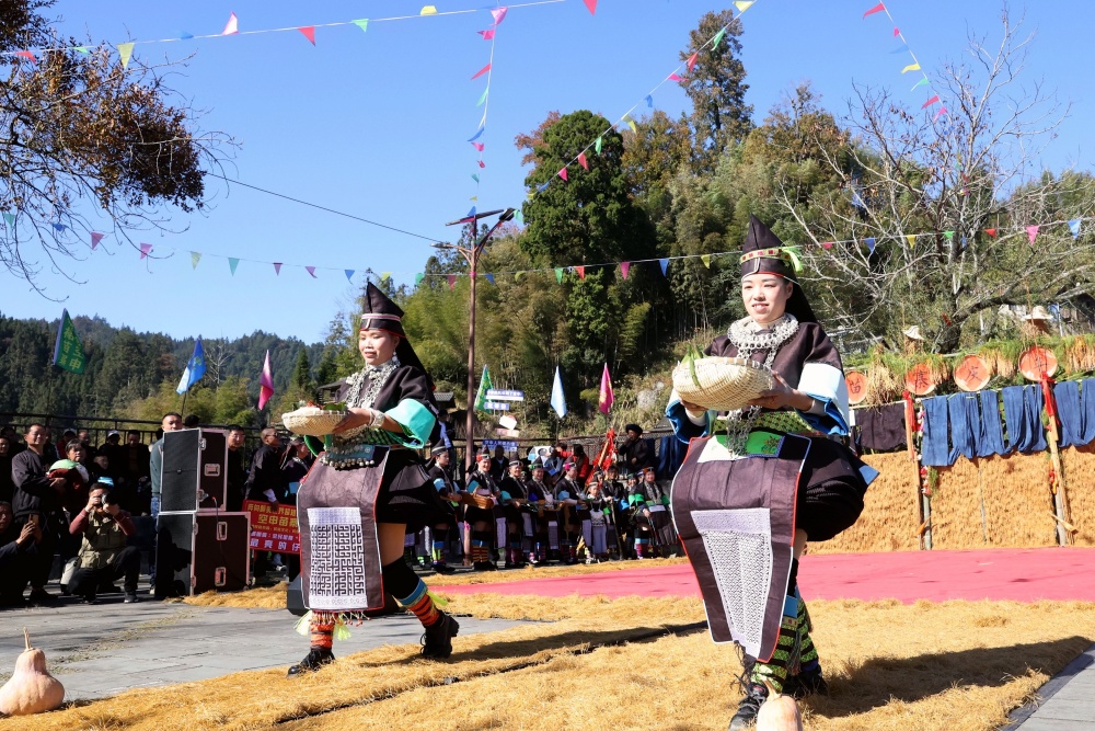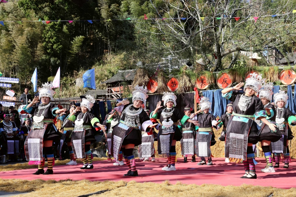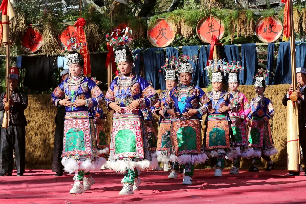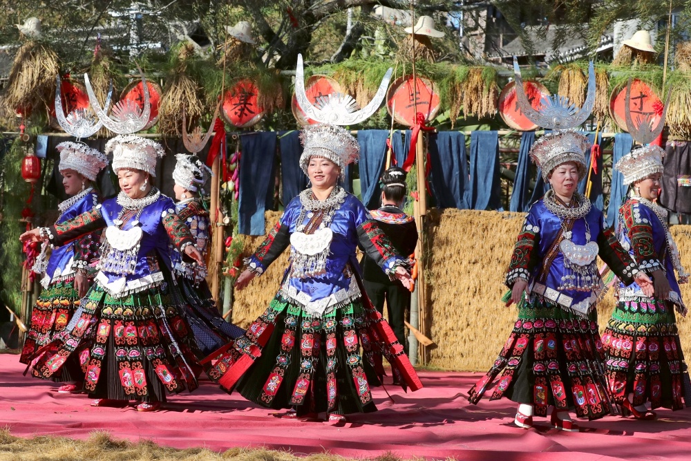 当日,贵州省黔东南苗族侗族自治州榕江县两汪乡空申村苗寨迎来传统苗年,苗族同胞身着节日盛装,吹芦笙、跳芦笙舞、唱情歌、走村秀、展示农具等,开展多彩活动欢庆苗年。