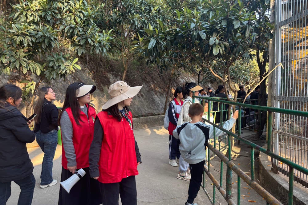 园区入口处,志愿者杨莎和胡德荣正忙着引导游客、核验门票。这对上班族每逢周末都来帮忙,“冯爷爷打理动物园不容易,我们过来搭把手,心里踏实。”杨莎一边指路,一边提醒游客:“猛兽区请靠外侧行走,注意安全。”他们穿梭在人群中,成为园区里一道亮眼的“流动风景线”。