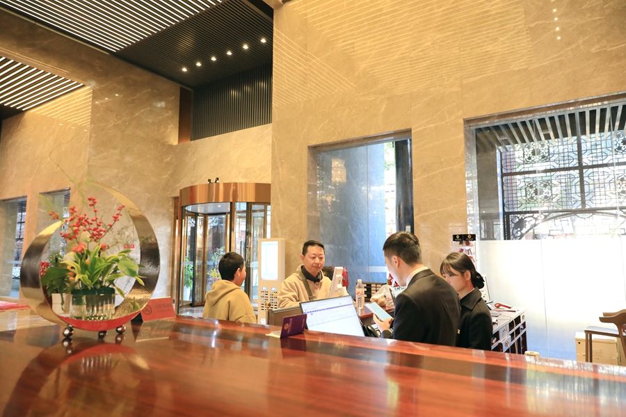 “作为黔东南州首家五星级酒店,我们的特色和优势在于建筑风格和装饰具有浓郁的苗侗文化元素,酒店内部装饰大量运用了苗绣、蝴蝶图案和牛角图腾等苗族文化符号,酒店的房间配有独立的私汤泡池,含有氡硫等40多种矿物质元素,能为游客提供多样化的体验。”吴朝娟介绍道。正是对本土文化的创新表达,让这家县域酒店,在“国考”中展现出不可复制的“优势”,实现从“达标”到“创优”的跨越。