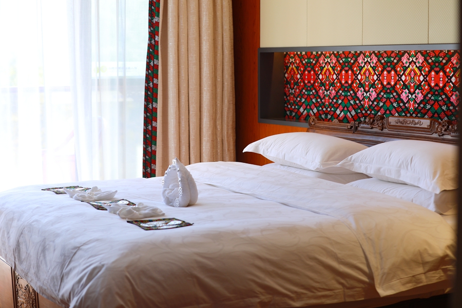 踏入仰阿莎国际酒店,扑面而来的是舒适惬意的氛围。从细致入微的服务,到独具匠心的苗绣装饰;从温馨宜人的客房,到一应俱全的配套设施,每一处细节都彰显着用心与品质。酒店以中国院落文化布局,一户一景,一景一空间,健身房、非遗展馆等设施一应俱全,让游客流连忘返。