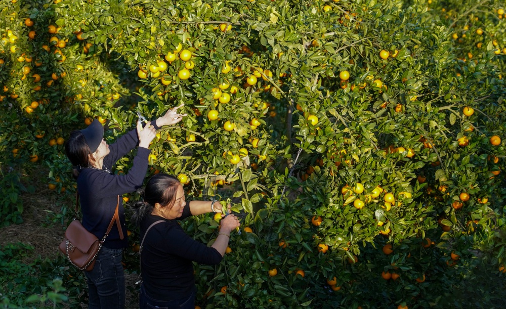 近日,贵州省从江县丙妹镇大塘村果园种植基地迎来丰收季,众多游客前来体验自主采摘乐趣。近年来,贵州省从江县积极探索农旅融合发展新模式,依托特色水果产业,通过“农业+旅游”模式,将传统的农业生产与休闲观光、体验旅游有机结合,有效提升了农产品的附加值,带动了乡村人气聚集,促进农民增收。