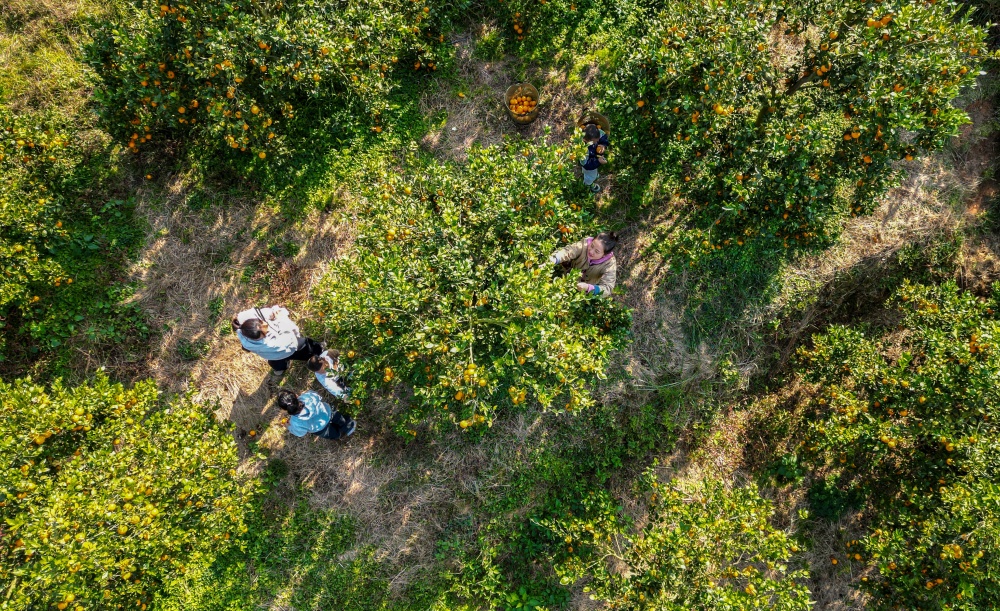 12月6日,游人在贵州省从江县丙妹镇大塘村果园种植基地自主采摘皇帝柑。