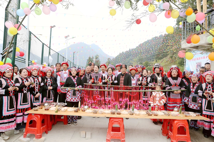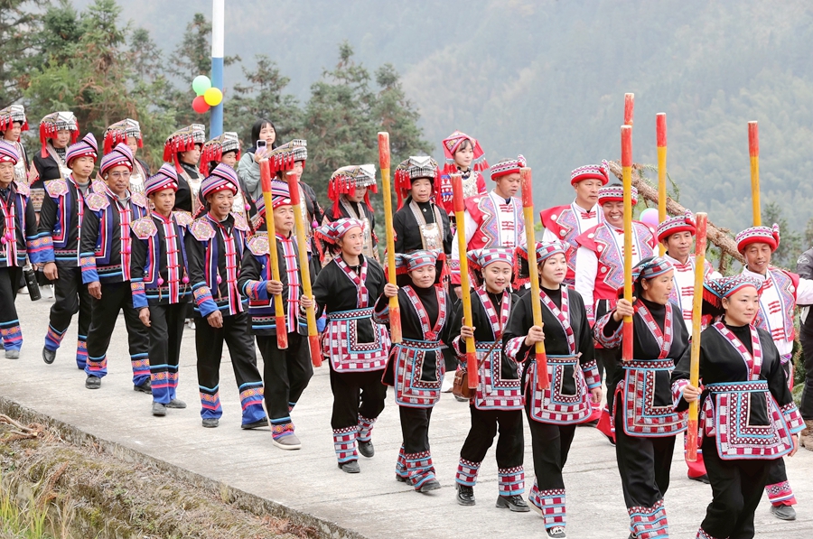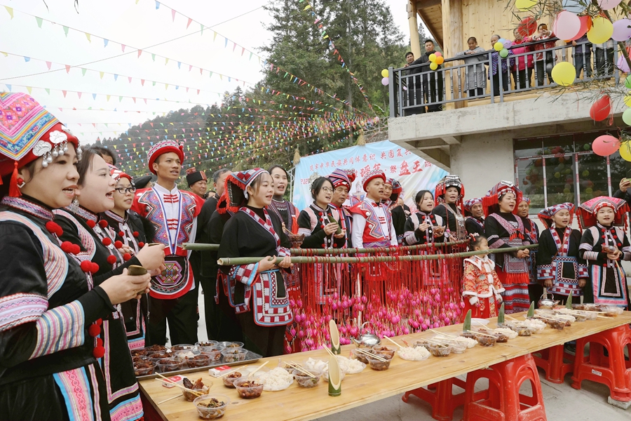12月5日,被列入传统村落的贵州省黔东南苗族侗族自治州榕江县塔石瑶族水族乡怎东村瑶族同胞迎来传统节日“盘王节”,瑶族同胞身着节日盛装,并邀请周边村寨的水族、苗族群众一起,开展民族特色的多彩活动,载歌载舞欢庆“盘王节”。