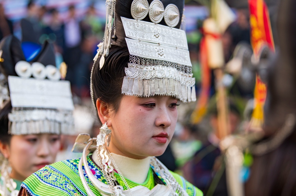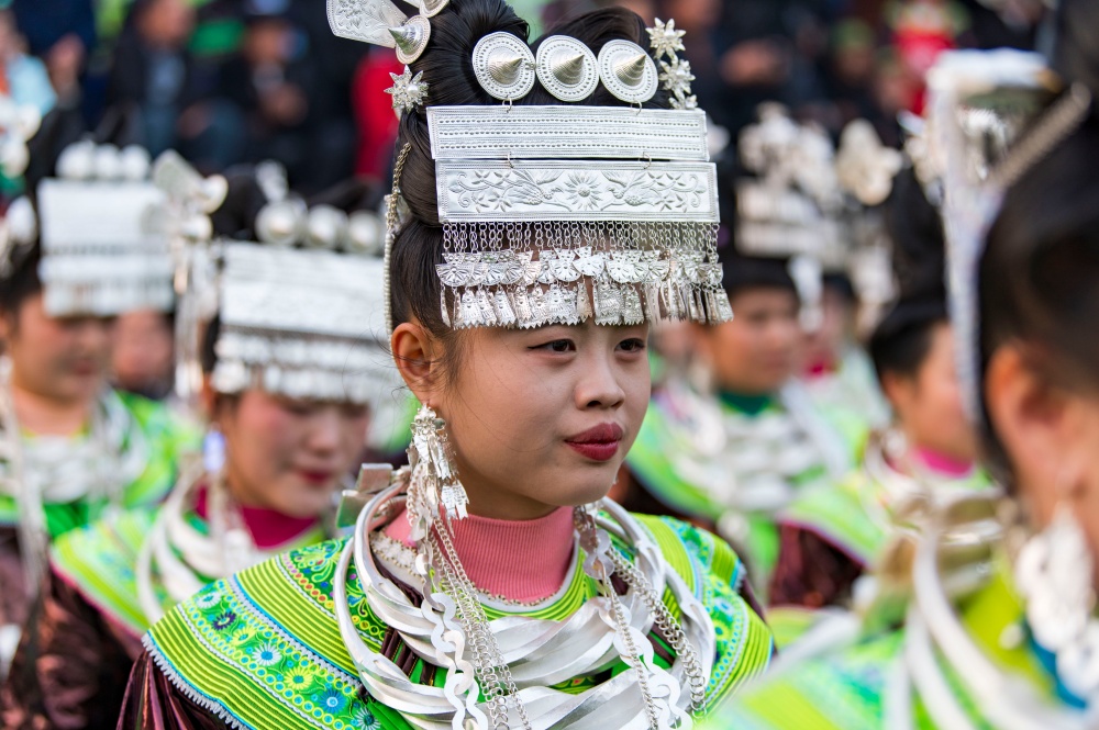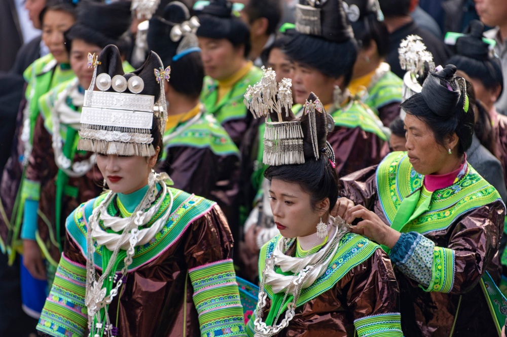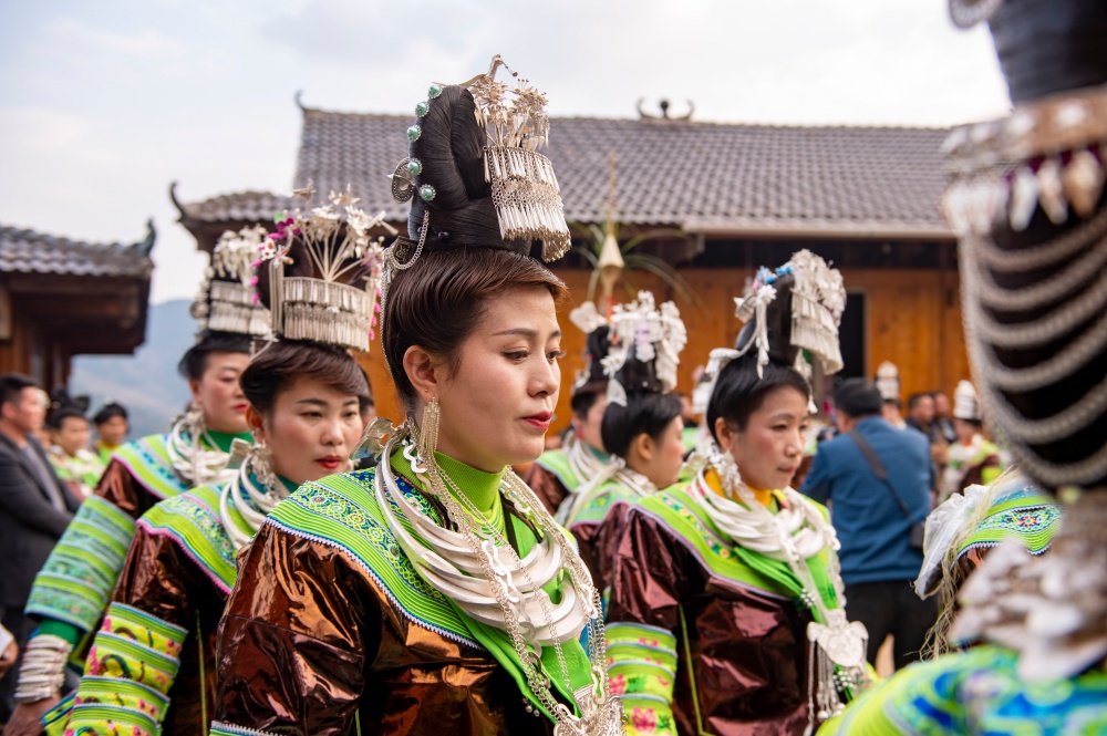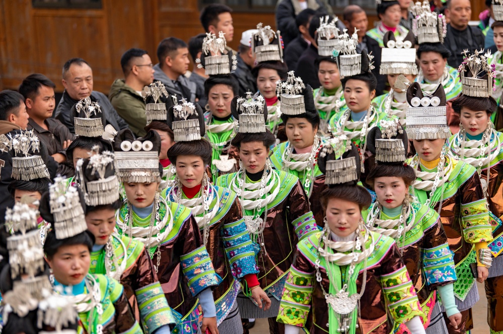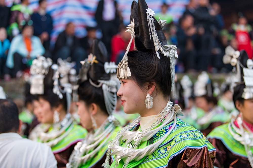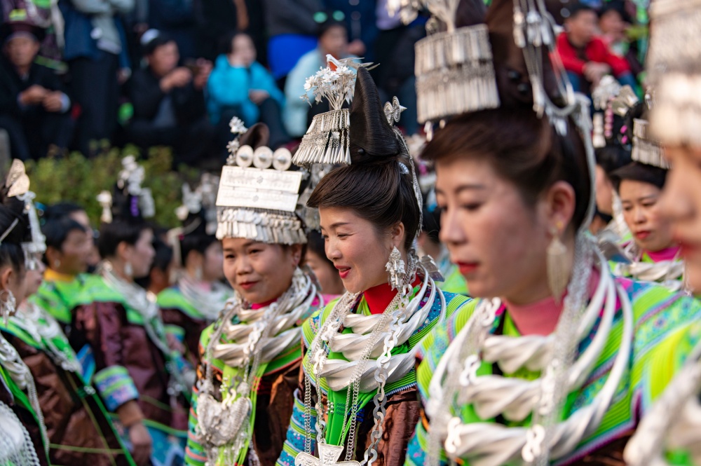 当日,贵州省黔东南苗族侗族自治州从江县加勉乡加模村迎来苗族同胞传统鼓藏节,来自周边村寨的苗族同胞盛装打扮,欢聚在芦笙坪上载歌载舞,尽情展示多姿多彩的苗族盛装服饰。