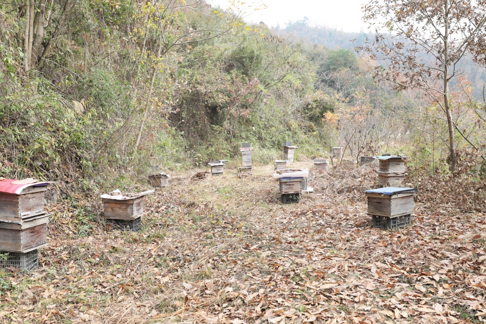 高雍蜂业养殖基地创建于2021年,基地坐落在观么镇新合村的一处大山里,这里森林茂密、蜜源植被丰富、气候适宜,为养蜂产业的发展提供得天独厚的条件。出于对养蜂产业的热爱,万木豆通过上网查询资料学习养蜂技术,经过几年的摸索与实践,万木豆已熟练掌握中蜂的生活习性与成长规律,成长为当地养蜂行业的技术能手。