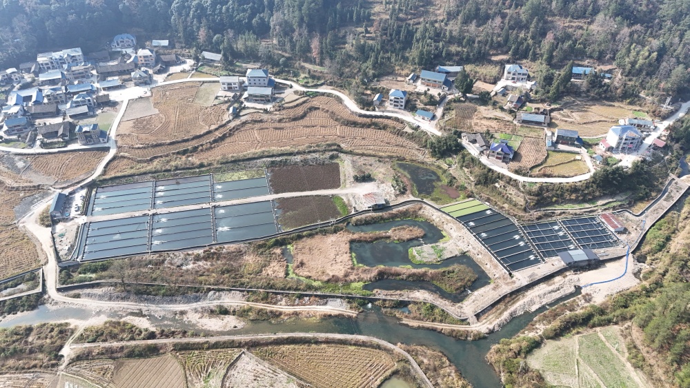 初冬时节,贵州省黔东南州岑巩县凯本镇毛口村群山叠彩。湖溪河河畔,一池池碧水如温润翡翠铺展开来,粼粼波光与错落民居、灵秀山水相映成韵,勾勒出一幅“山水养渔、渔润乡村”的生态画卷。
