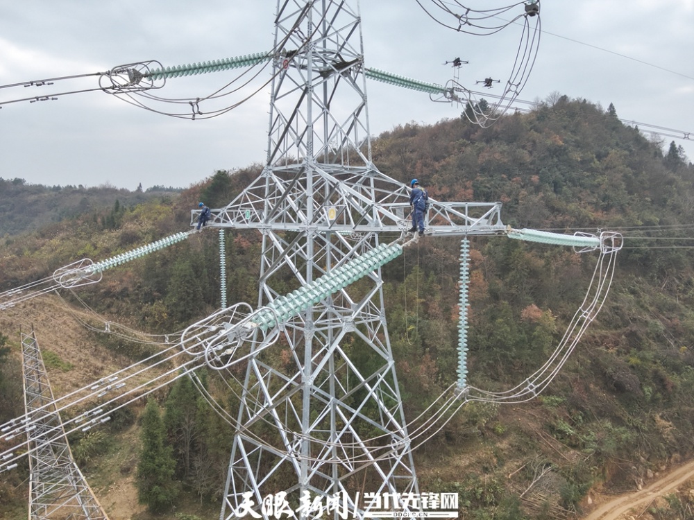 本次工程于今年6月启动。针对施工过程中涉及的高速公路跨越等复杂作业,凯里供电局积极与“一路三方”联动,协同优化施工方案,强化作业风险管控,保障了工程安全有序推进。11月23日该工程进入停电施工阶段,主要对500千伏福施I回线045号塔至093号区段进行地线融冰改造、同时对6基铁塔进行防冰加固改造,将该区段设计冰厚度提升一个等级,从而避免在极端冰雪天气下发生倒塔、断线等事故的风险。凯里供电局组建25人验收小组,严格按照验收标准开展地面弧垂测量、登塔及走线验收,对铁塔本体、导地线、绝缘子等设备精准化查验,确保本次工程“零缺陷”投运。