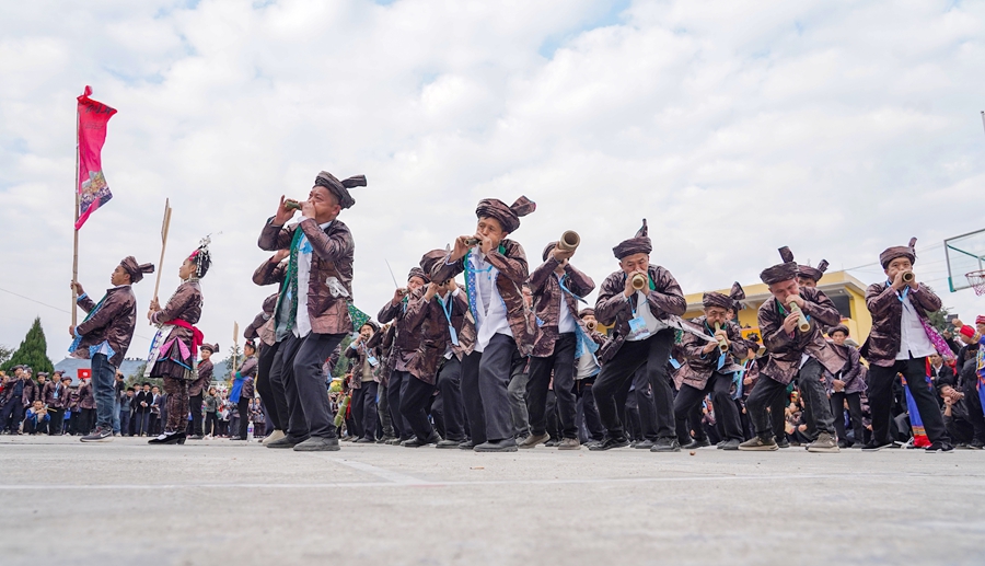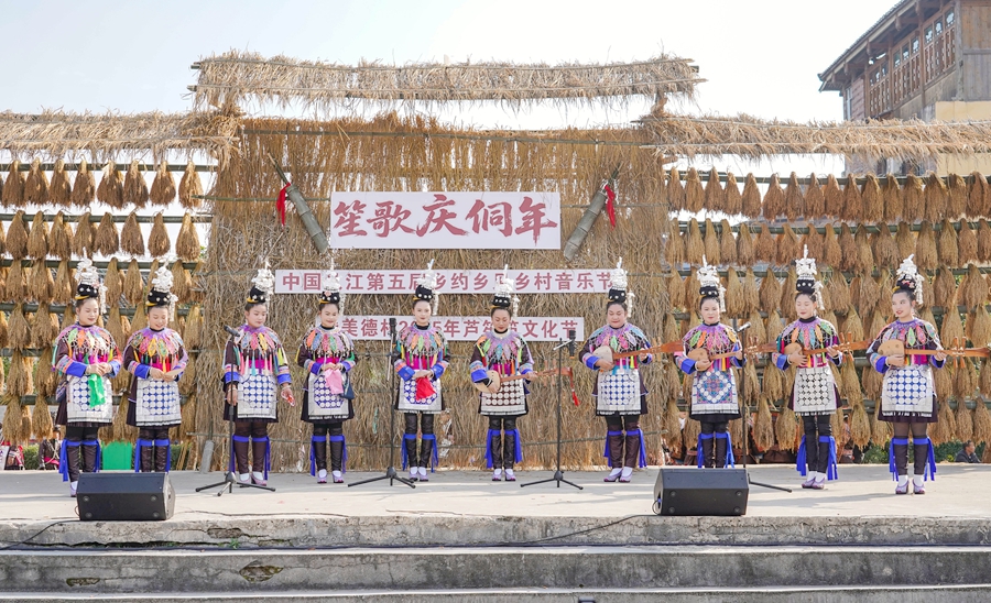 12月20日,从江县高增乡美德村举行“笙歌庆侗年——中国从江第五届乡约乡见乡村音乐节暨2025年美德村芦笙笛文化节”。侗族群众身着节日盛装,开展盛装巡游、千人祭萨、文艺展演、芦笙笛比赛、鼓楼长桌宴等丰富多彩的民俗活动,与各地游客共同欢庆侗年。