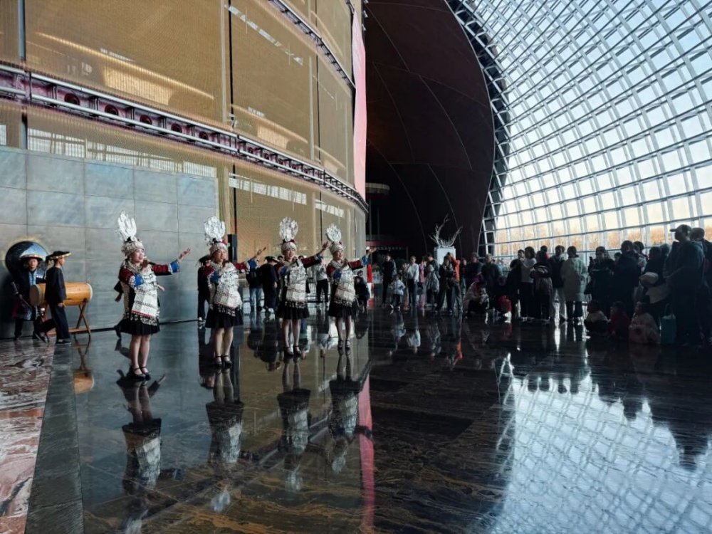 12月22日,国家大剧院建院十八周年系列活动在北京盛大启幕。台江县再度受邀登上这一国家级文化平台,携浓郁苗族风情的文化盛宴亮相,充分彰显台江深厚的民族文化底蕴与“村BA”品牌的创新活力。代表团以动态歌舞展演与静态文创展示相结合的形式精彩呈现,成为活动现场备受瞩目的焦点。