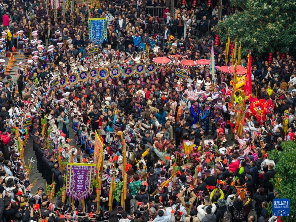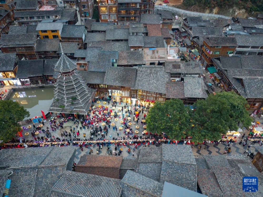 20日至21日,贵州省黔东南州黎平县迎来了一年一度的侗年盛会。被誉为“侗乡第一寨”的黎平县肇兴侗寨,每年都会举办独特的民俗文化活动,打年粑、炸侗果、唱侗歌、盛大民族巡游、芦笙比赛和篝火晚会,精彩纷呈的节庆活动吸引着无数游客,一同沉浸在欢乐的节日氛围中。