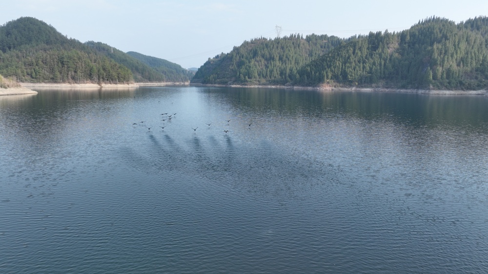观察还发现,伴随黑颈鸬鹚一同栖息的,还有白鹭、苍鹭等多种涉禽。这些候鸟的驻足停歇,进一步印证了水库水体清澈、鱼类资源丰富、生态系统完整的良好状况。