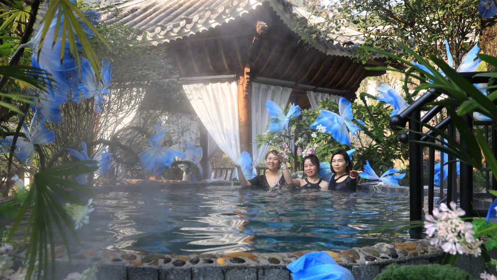来自湖南怀化的游客舒女士已是第三次到访,她坦言:“每次来感觉都不一样,这次来特别热闹,又有了许多有特色的泡泉,特别喜欢当归的那个汤池,泡起来很舒服。”