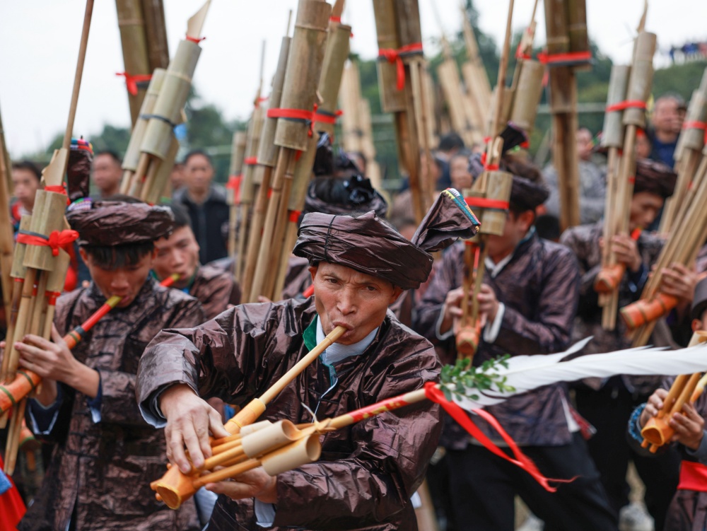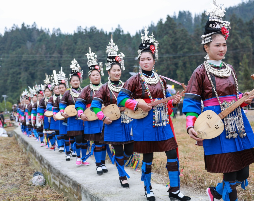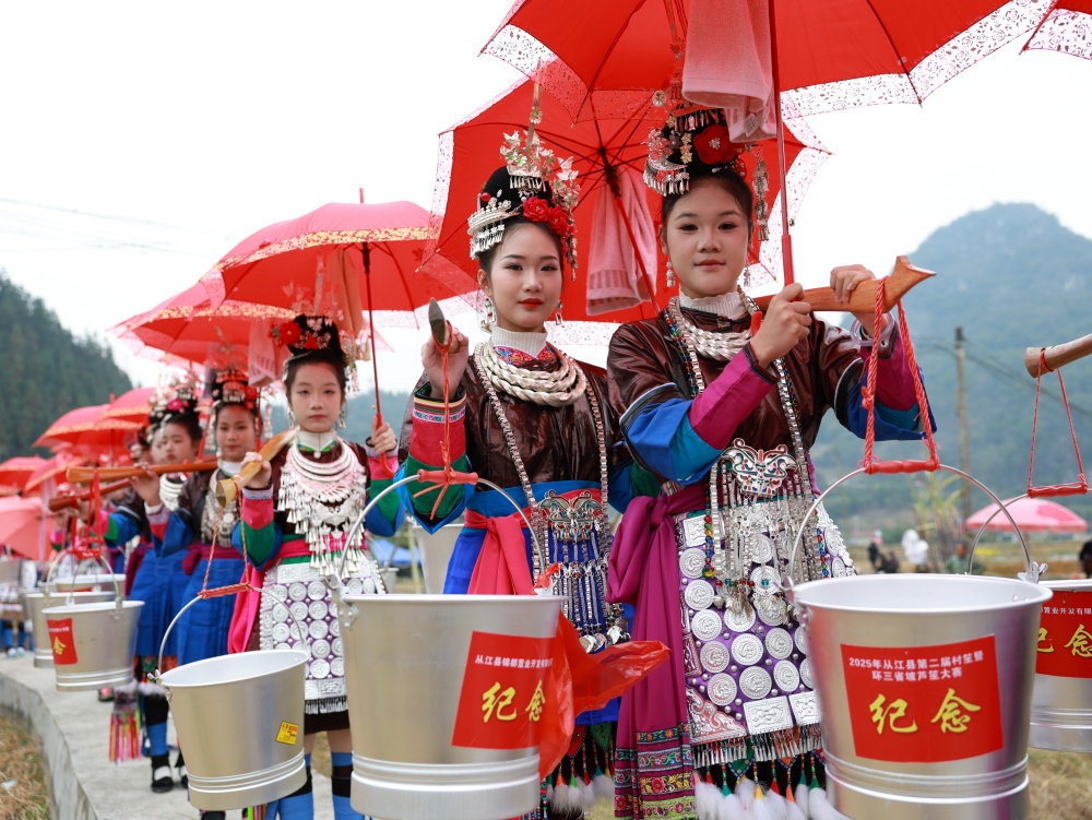 12月28日,贵州省黔东南苗族侗族自治州从江县第二届村笙暨环“三省坡”铸牢中华民族共同体意识芦笙比响大赛在贯洞镇龙图村火热开赛。