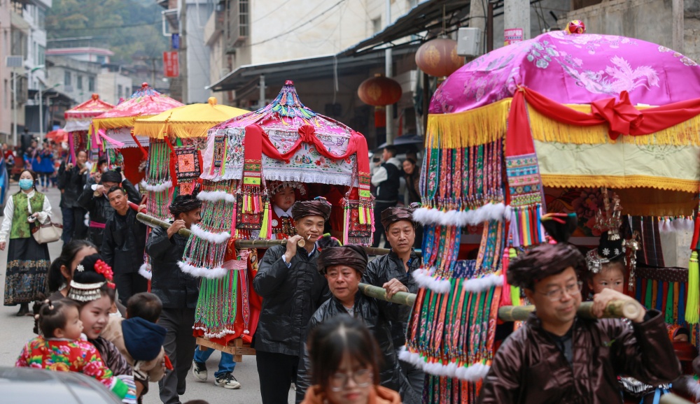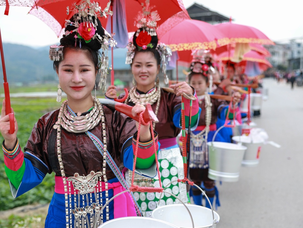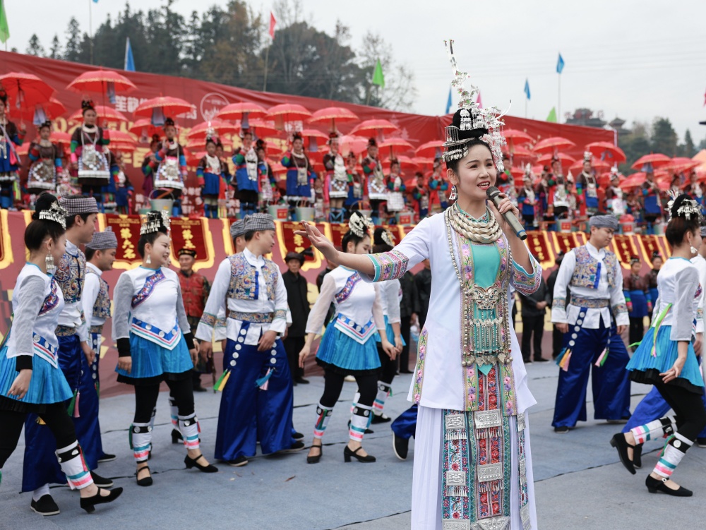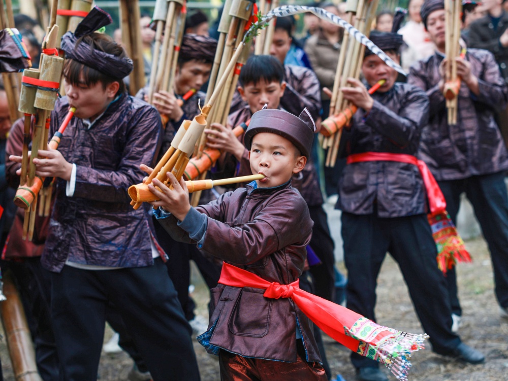 当日,来自黔、桂两省(区)的苗侗壮瑶等民族同胞205个芦笙队、数千名群众身着盛装齐聚龙图侗寨,以侗族抬“官”人巡游、千人祈福、千人侗族大歌、千笙齐奏、芦笙笛展演、歌手梁爱清演唱《芦笙响起在地方》、田间长桌宴等民俗活动共庆佳节。