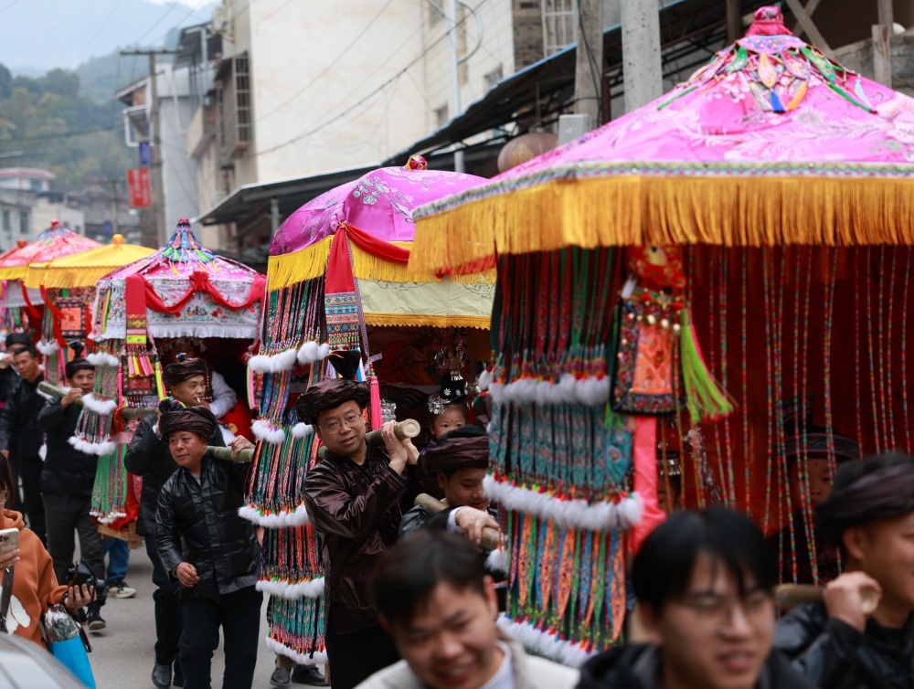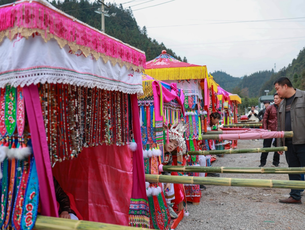 12月28日,贵州省从江县第二届“村笙”暨环“三省坡”铸牢中华民族共同体意识芦笙比响大赛盛大启幕。黔桂两省(区)206支芦笙队齐聚侗乡,千笙和鸣的雄浑乐声回荡山谷。作为活动的重头戏,非遗民俗“抬官人”巡游精彩上演,身着盛装的队伍载歌载舞、鼓乐喧天,与盛装巡游、长桌宴等活动交相辉映,各族群众沉浸式体验侗乡风情,以笙为媒、以乐传情,共绘民族团结一家亲的美好画卷。