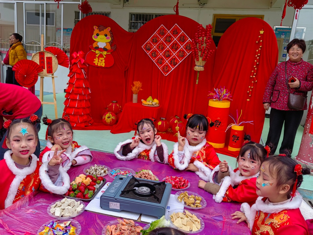 活动现场,红灯笼、春联、福字等装饰洋溢着喜庆的新年气息,精彩的文艺节目、传统民俗表演、丰富的美食盛宴穿插其中,孩子们沉浸式感受中国传统年俗的魅力,在欢乐、轻松的氛围中迎接即将到来的2026年。