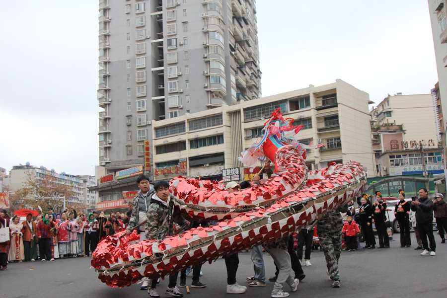 600年历史的青石板路上,龙灯飞舞、笙歌悠扬、巡游踏歌、民族歌舞表演、刨汤宴、篝火晚会等活动轮番登场,让百年老街在辞旧迎新的喜庆氛围里,绽放出独特的文化魅力。