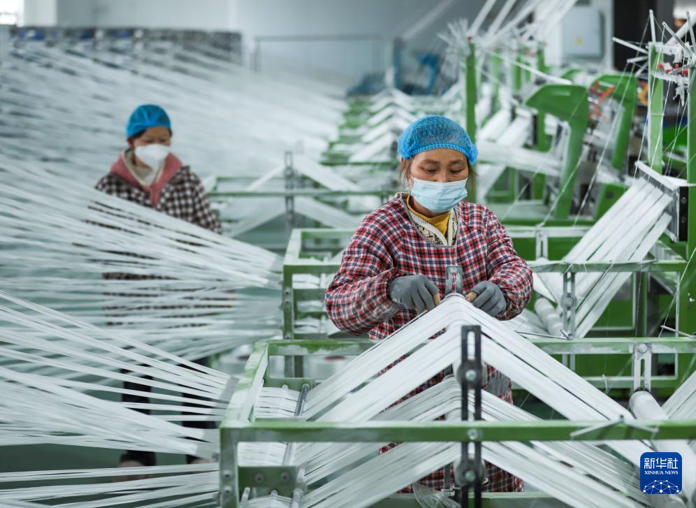 1月4日,绣娘在贵州省黔东南苗族侗族自治州施秉县一家数字化苗绣企业生产车间作业。