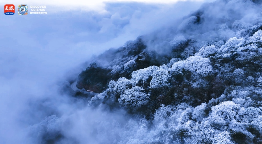 地处贵州省黔东南的雷公山国家级自然保护区,正迎来它一年中最澄澈的时节。当丰沛的水汽与山间的低温相遇,雾滴在植物枝条上凝华,形成了独特的雾凇景象,当地俗称“树挂”。