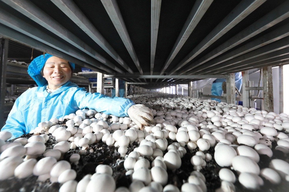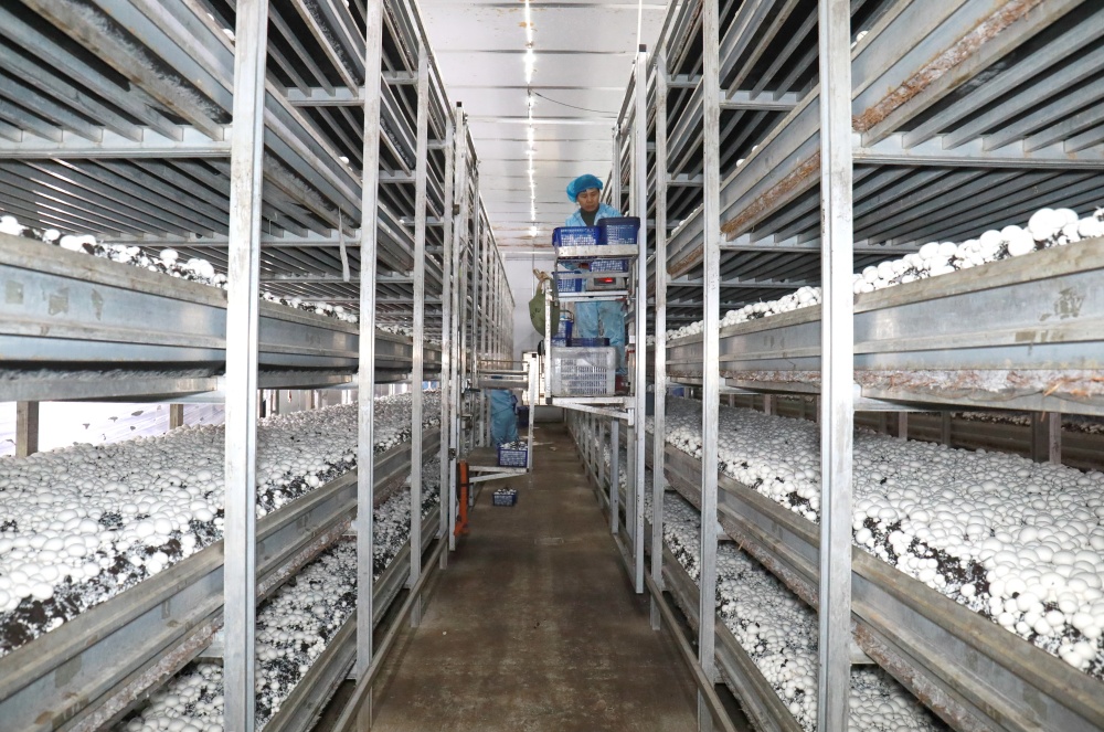 “通过立体种植,我们菇房实际种植面积仅1008平方米,却达到传统模式约3倍的种植密度,”技术主管周沿志说,“种植茬数也从传统的6茬增加到9茬,全年稳定生产,综合效益相当于过去13亩土地的产出。”