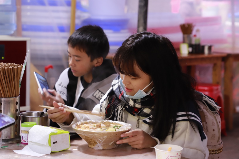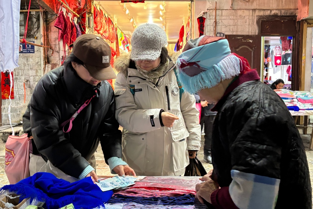 “这场景,民族味儿真足!”浙江的摄影爱好者林先生举起相机,将挑丝线的苗族阿婆收入镜头。不远处的酸汤粉摊,福建游客唐女士捧着碗吃得尽兴:“这酸汤粉真地道,等会儿还得去淘点竹编工艺品!”