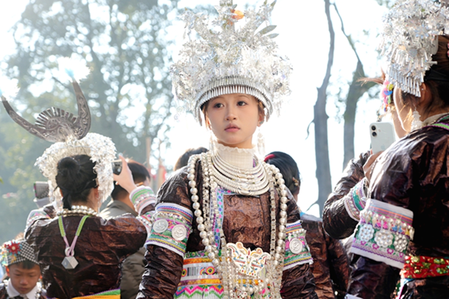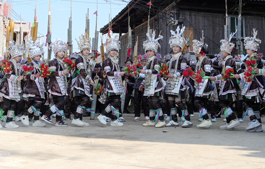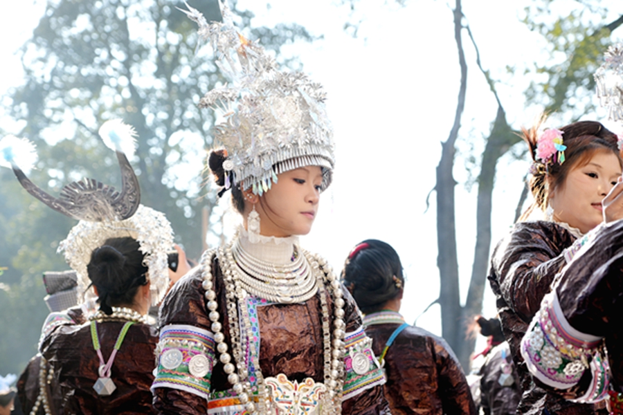 晌午过后,村民们陆续聚集到芦笙场,男女老少皆身着绚丽的民族盛装,步履款款,银彩生姿,每个人的脸上都洋溢着节日的欢愉。