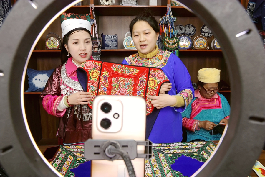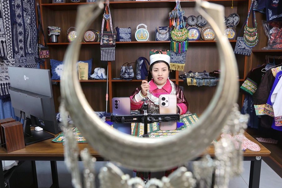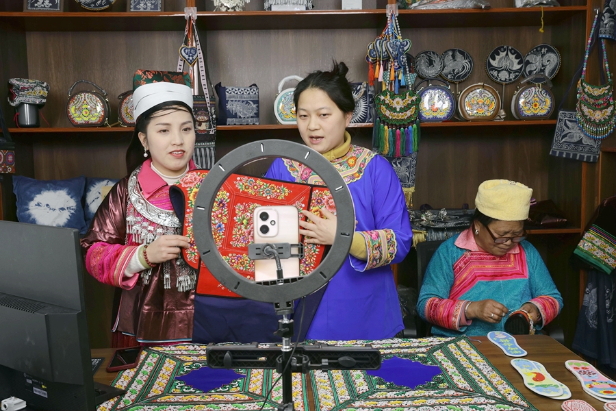 近年来,榕江县车民街道富民社区坚持以党建为引领,借势“村超”火爆流量,紧紧围绕易地搬迁群众就业增收需求,开展直播培训赋能群众稳就业、促增收。社区党员干部充分发挥示范带动作用,利用业余时间开展直播带货,组建电商“新农人”队伍,助力非遗产品、农特产品借直播渠道走出大山,拓宽群众增收致富。
