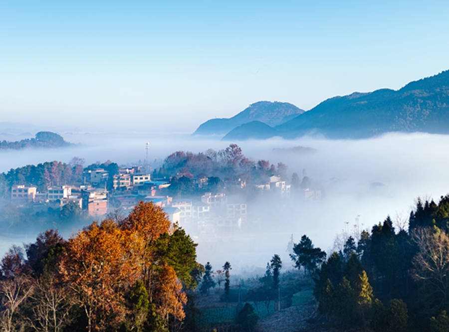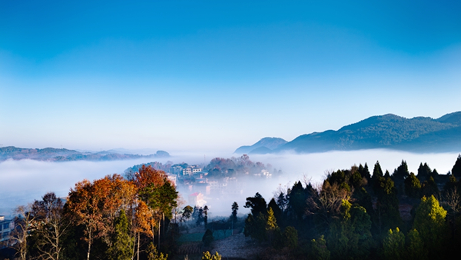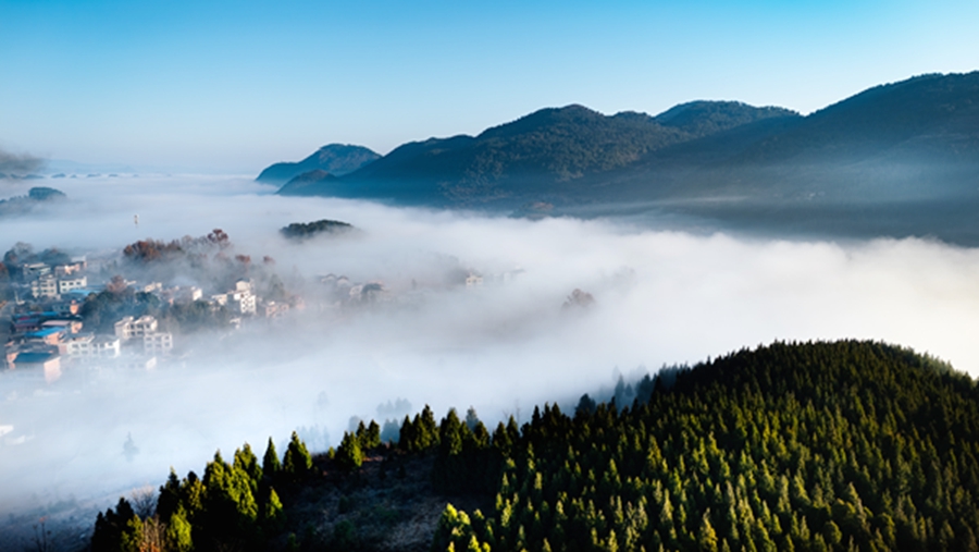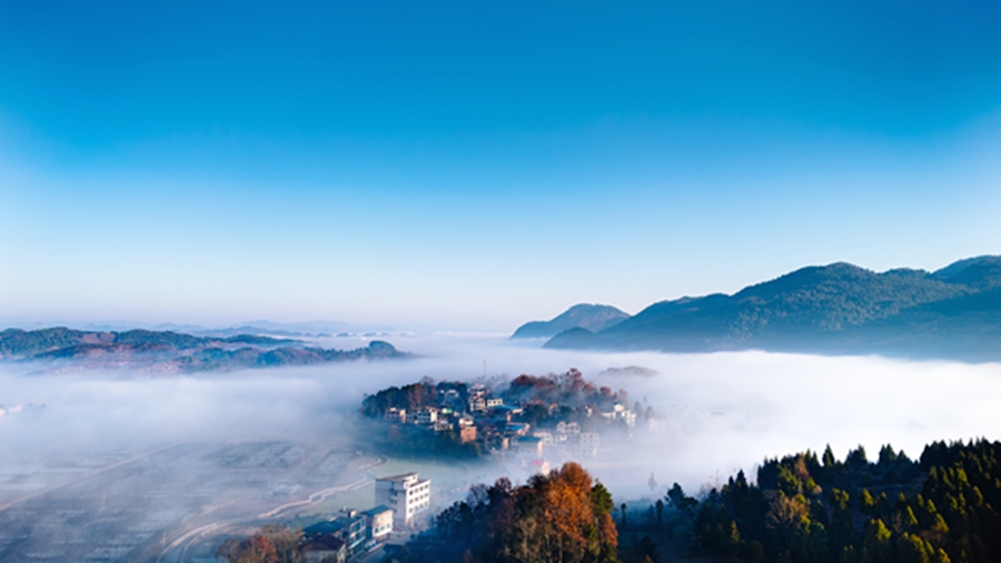 1月8日,初冬的岑巩县水尾镇迎来了一场如梦如幻的平流雾景观,山村上空笼罩薄雾,乡村的房屋、大树都被笼罩在一片白茫茫的雾气之中,仿佛披上了一层薄纱,在远山、田园和高速公路的衬托下,云海翻涌流动,浓墨淡染,民居和树木在云雾中半遮半掩,仿佛一幅水墨画卷,蔚为壮观。