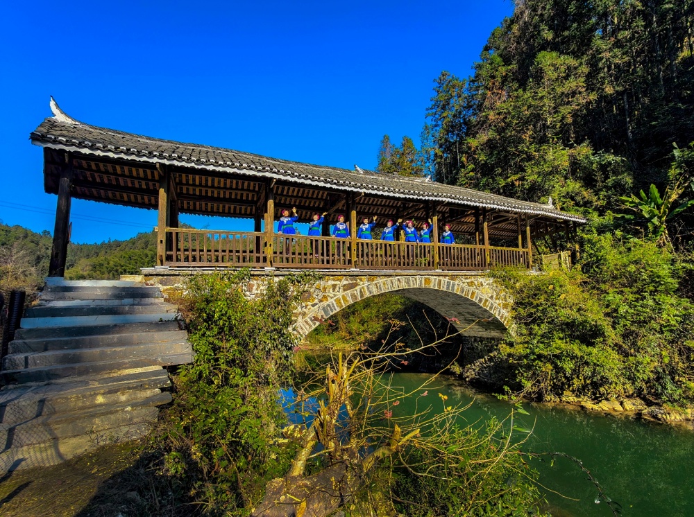 踏入抱塘村,700余年的古村气韵便随青石板驿道扑面而来,年味早已悄然浸润村寨的每一寸肌理:明清窨子屋错落成画,吊脚楼依山而建,古老家祠重焕荣光;侗族特色的腌鱼、腊肉、灰碱粑整齐码放在“满细农家乐”的八仙桌上,色泽诱人;百年风雨桥静卧溪畔,桥上北侗妇女的红头绳与清水江的粼粼波光相映成趣,将清水江木商文化的沧桑印记与新春的红火暖意,揉成一幅灵动鲜活的侗族风情画卷。
