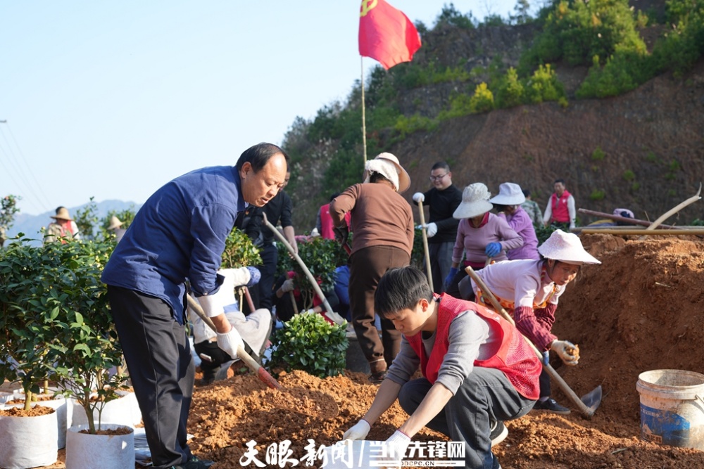“山茶花苗根系要舒展,回填土要分层压实,后期还要及时浇水除草!”在敦仁村苗圃基地,乡林业站党员技术员现场开设“田间课堂”,手把手传授换杯培苗管护关键技术。党员志愿者分工协作,挥锹铲土、扶苗定植,有条不紊完成换杯培苗作业。当天累计换杯培苗1000余株,同步建立“党员联户”管护机制,确保“培育一棵活一棵、种一片成一片”。
