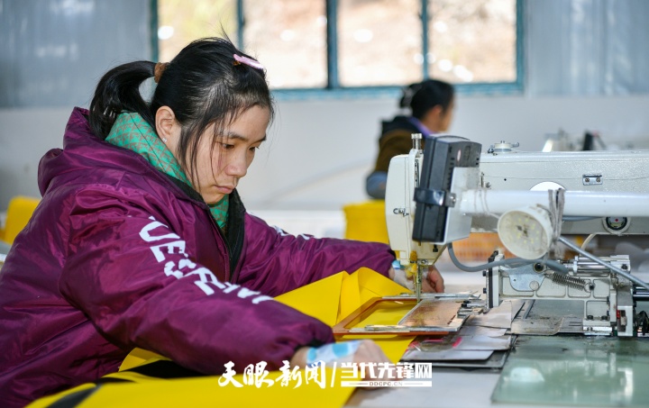 在这条“家门口的生产线”上,五十多名工人正埋头赶工,其中多数是周边移民安置区的居民。女工胡登菊指尖翻飞,一个背包雏形迅速成型。“在这里干活,时间自由,能接送娃娃,一个月能挣3000来块。”她一边熨烫面料一边笑着说。为了赶在春节前完成订单,她和工友们自愿延长工时,车间灯火常亮至深夜。“多干点,过个丰盛年。”胡登菊说着,手里又完成一个背包的肩带缝合。