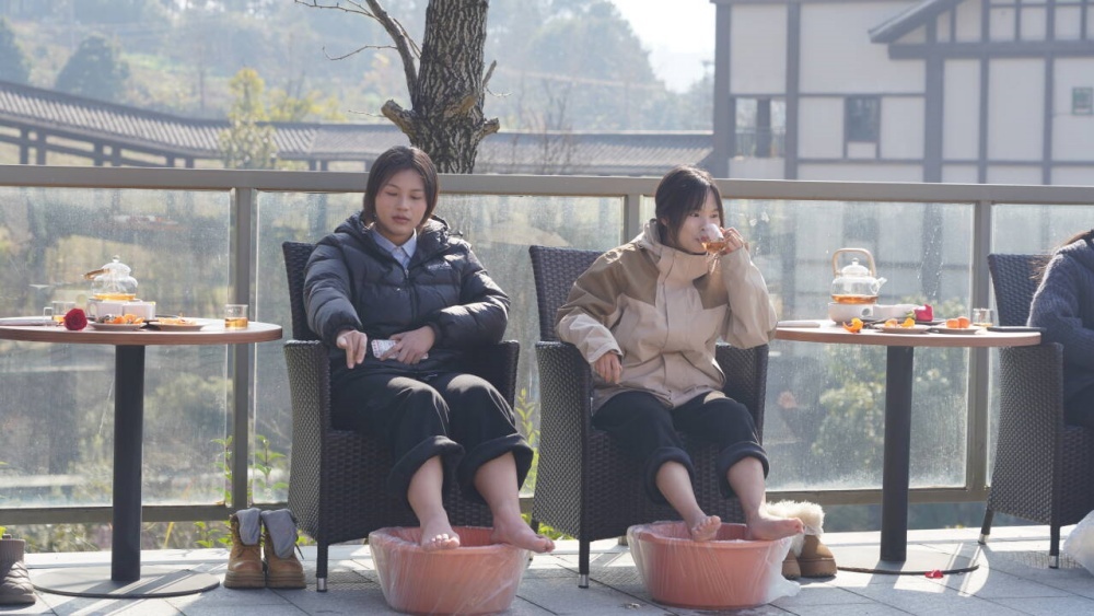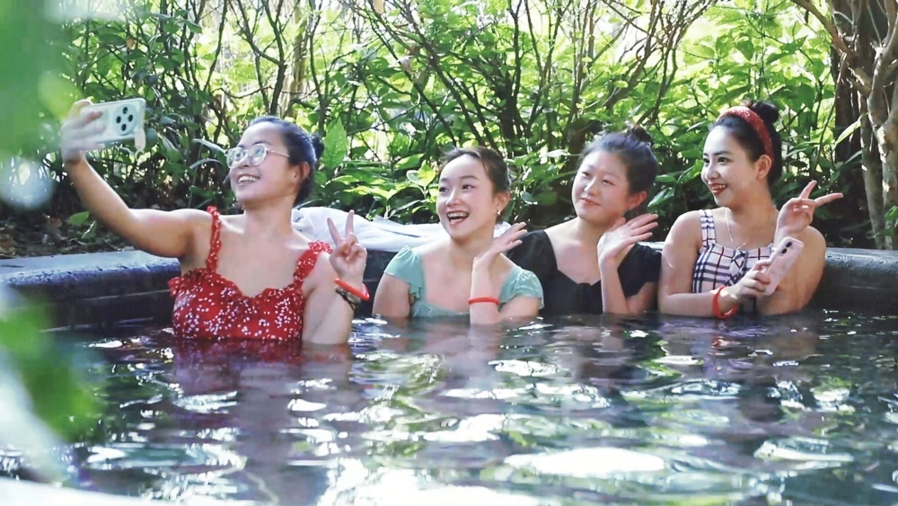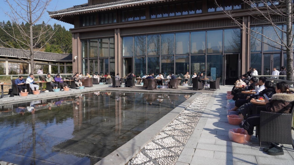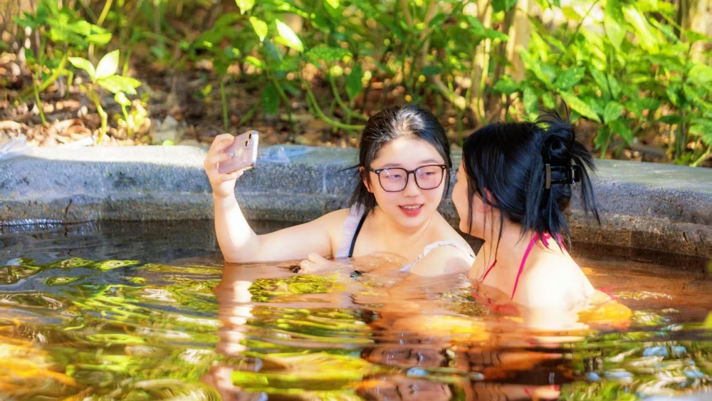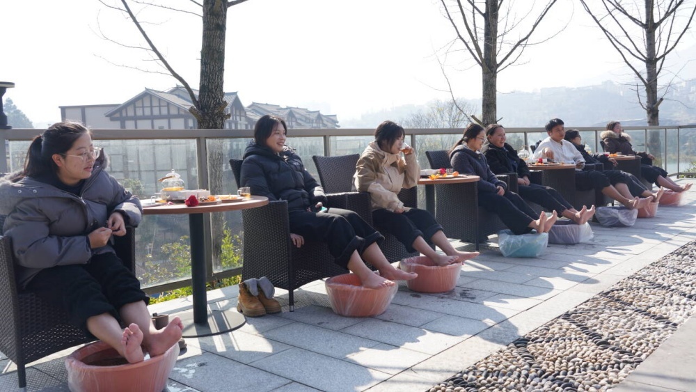 为提升游客体验,今年该酒店深入挖掘地域特色文化,新增苗药康养汤池。同时,推出“温泉+苗药足浴”等套餐。游客们围坐露台沐浴冬日暖阳体验苗药足浴,在苗药汤盆与特色茶饮中感受苗医文化魅力。