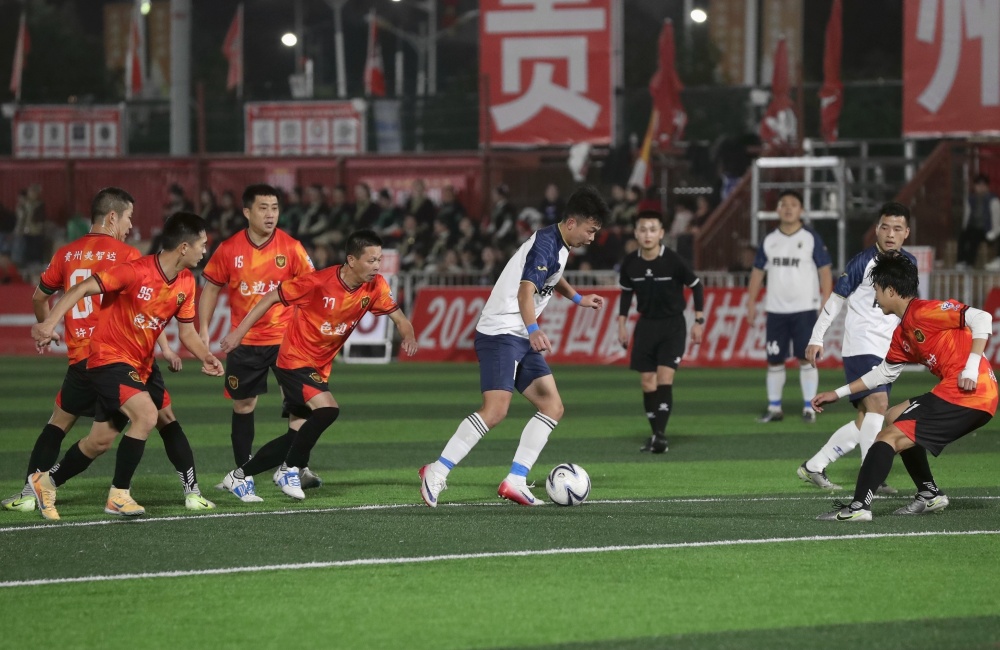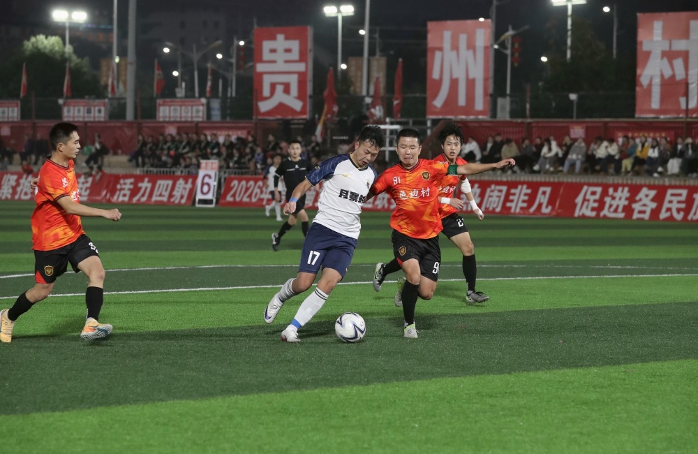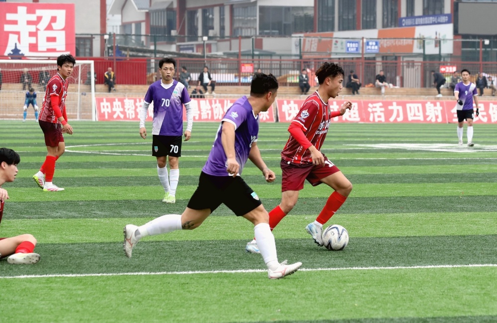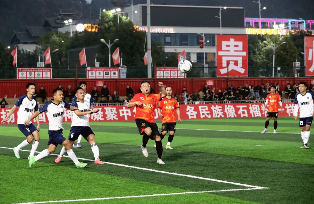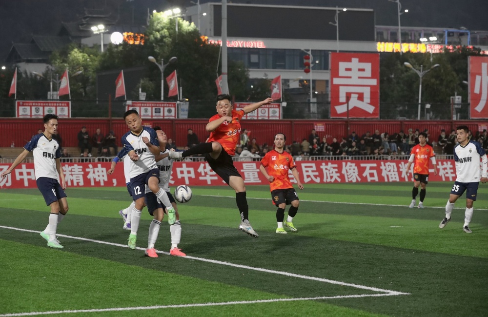 当日,贵州村超预选赛在榕江县城北新区“村超”足球场进行。来自榕江县朗洞镇色边村足球队、古州镇月寨村足球队、寨蒿镇寿洞村足球队、乐里镇三联村足球队、塔石乡乔秧村足球队等14支球队进行7场对决,中场开展非遗表演,赛场呈现一派激情火热氛围。