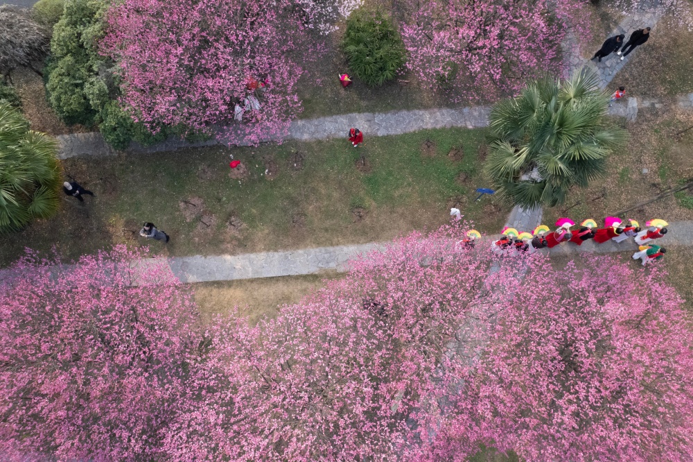 1月17日,当日进入“四九”,贵州省黔东南苗族侗族自治州凯里市处处暗香浮动,行政中心广场、苹果山公园、东湖湿地公园、西出口公园等地的梅花迎来盛花期。枝头梅花艳红似霞、嫩黄如金,层层叠叠的花蕊吐露芬芳,将冬日的凯里装点得生机盎然,引得市民与游客纷纷驻足观赏、拍照留念。