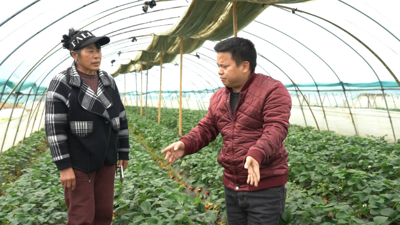 在丹寨县金泉街道洗马塘草莓基地里,草莓苗正值生长关键期。农技专家俯身查看苗情与土壤墒情,结合低温天气讲解大棚保温、降湿、病虫害防控技术,手把手指导盖内膜、铺地膜,破解越冬管护难点,让种植户掌握技巧、心里有底。