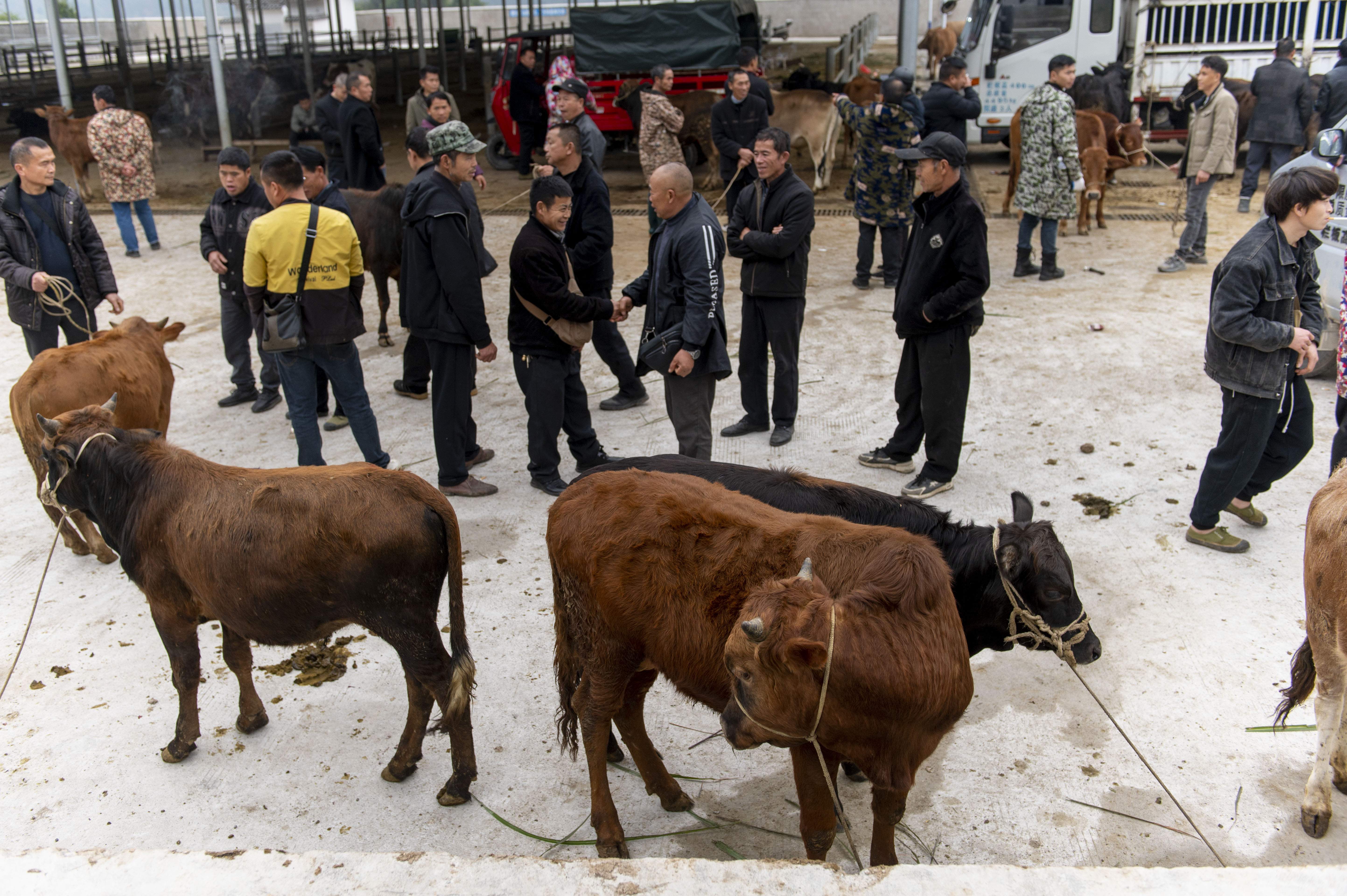 1月19日,人们在贵州省从江县洛香镇“小牛超市”选购牲畜。