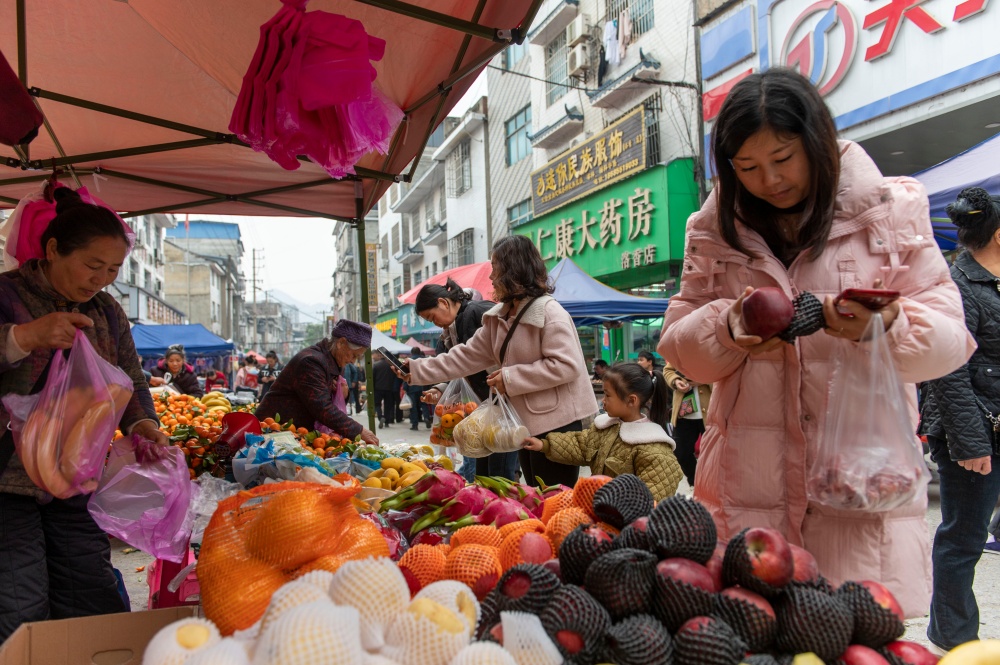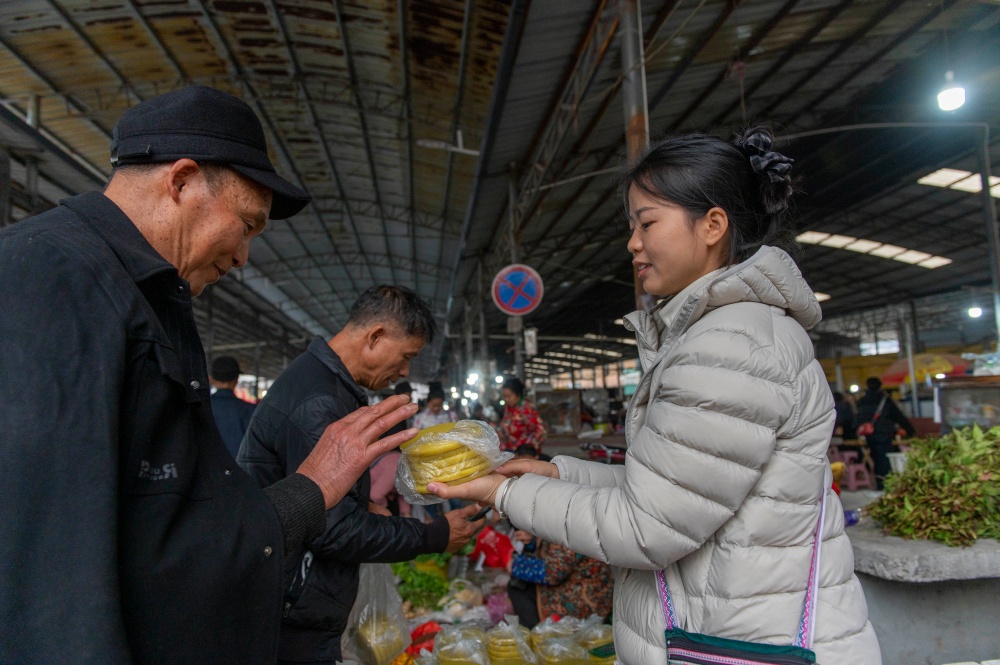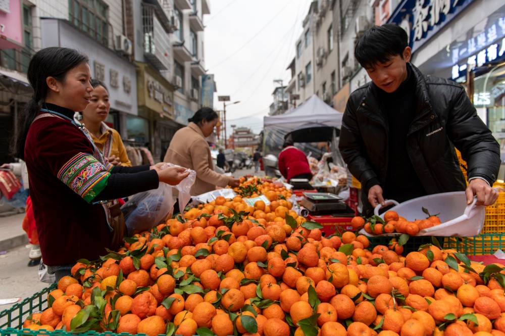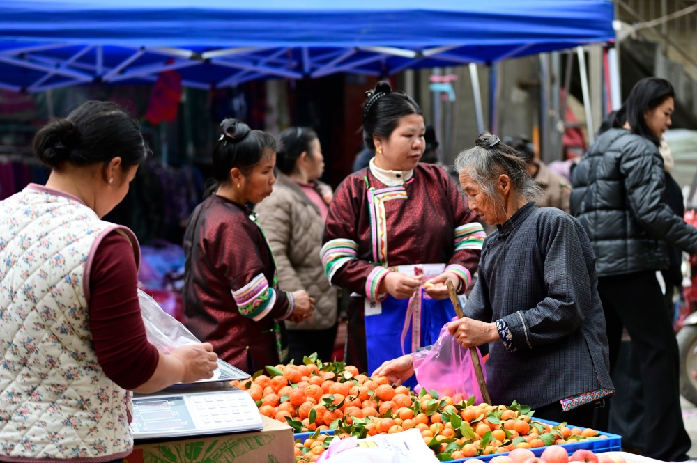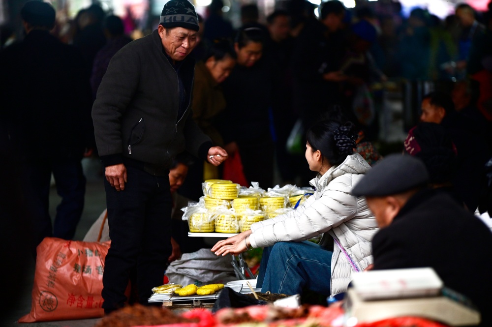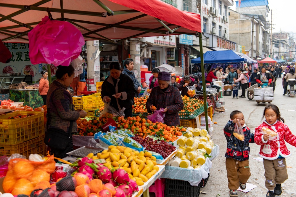 当日是农历腊月初一,贵州省黔东南苗族侗族自治州从江县洛香镇农贸市场迎来赶集日。集市上蔬果、肉类、水产等农副产品种类丰富,供应充足。周边群众纷纷前来赶集置办年货,市场内人头攒动,交易活跃,洋溢着浓厚的腊月集市氛围。