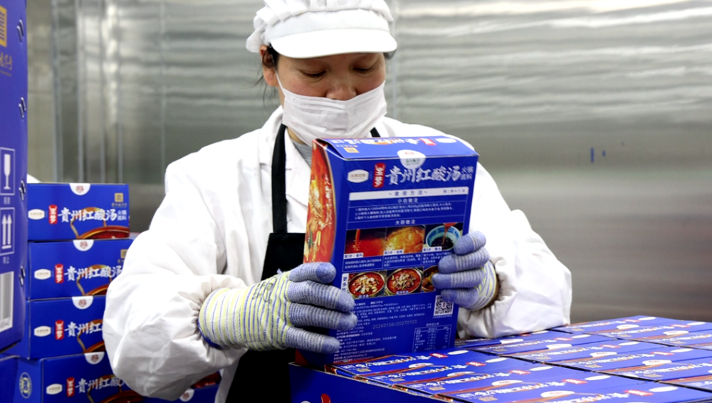 进入1月,麻江县明洋食品有限公司商超订单源源不断,升级改造完成的智能化生产车间里,日均有10万袋包装精美的酸汤火锅底料从自动生产线下线,发往全国各地。而在改造前,半自动生产线每日只能生产8千至1万袋。