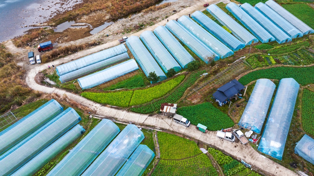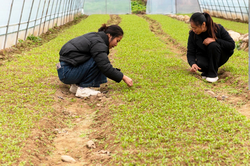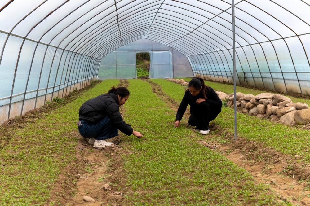 1月20日,村民在贵州省从江县刚边壮族乡平中村育苗大棚里管护辣椒苗。