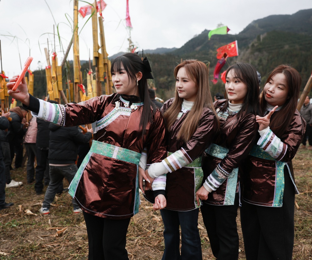 进入腊月,贵州省黔东南苗族侗族自治州从江县刚边壮族乡壮族同胞迎来了一年一度的壮年,当地壮族群众欢聚一堂吹奏芦笙,欢欢喜喜过壮年。壮年,是当地壮族同胞最为隆重的传统节日,在每年的农历十二月初一开始,人们通过吹笙踏舞,既表达对过去一年丰收的庆贺与感恩,也寄托着对新春吉祥、村寨安康、风调雨顺的美好祈愿。这一传统延续至今,已成为凝聚族情、传承文化、喜迎新岁的重要载体。